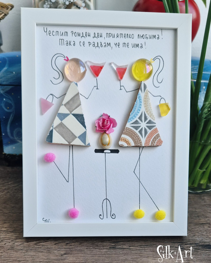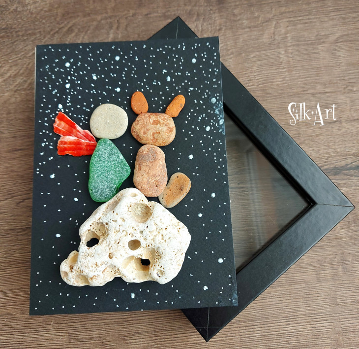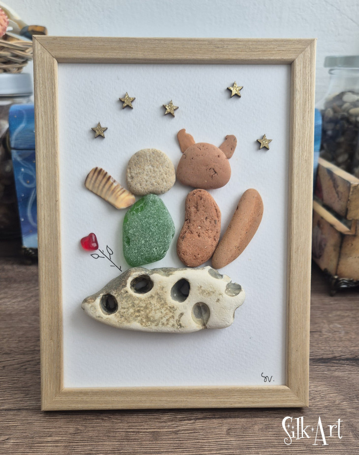 Здравейте! Преди повече от десет години започнах изработвам различни декорации с морски раковини, отломки, камъчета. В началото правих пана основно с рисувани камъчета - малки селца с къщички, дървета, птици. След това дойде ред на морските пана - изцяло декорирани с миди, охлювчета, рапани... Експериментирах разбира се и със стъклени картини, запечатали завинаги морските съкровища в епоксидна смола. Последните готини съм се отдала на картини, декорирани с морски стъкълца и камъчета.