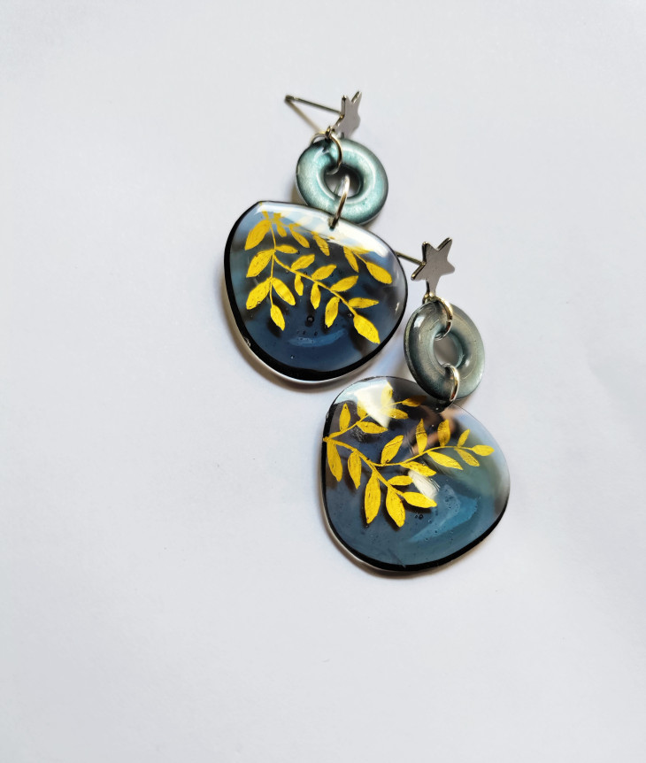 Обеци от смола със сребърни ленти