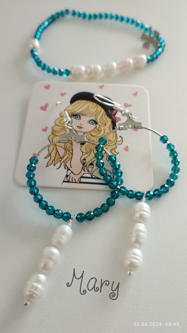 Комплект от две гривни с перли, мъни...