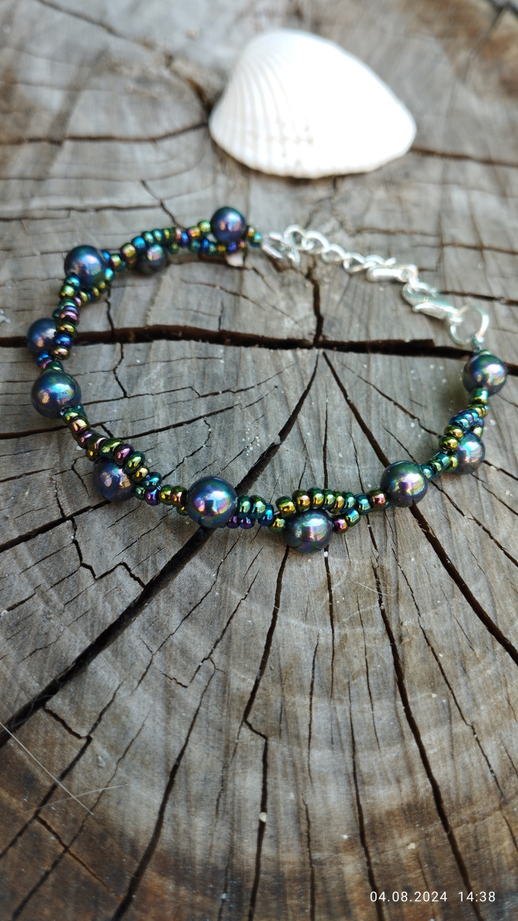 Гривна със седефени перли и мъниста