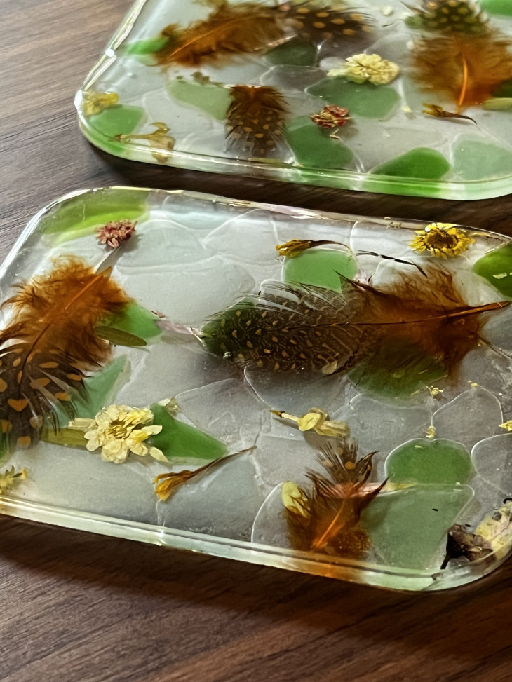 Комплект две подложки за чаши с пера