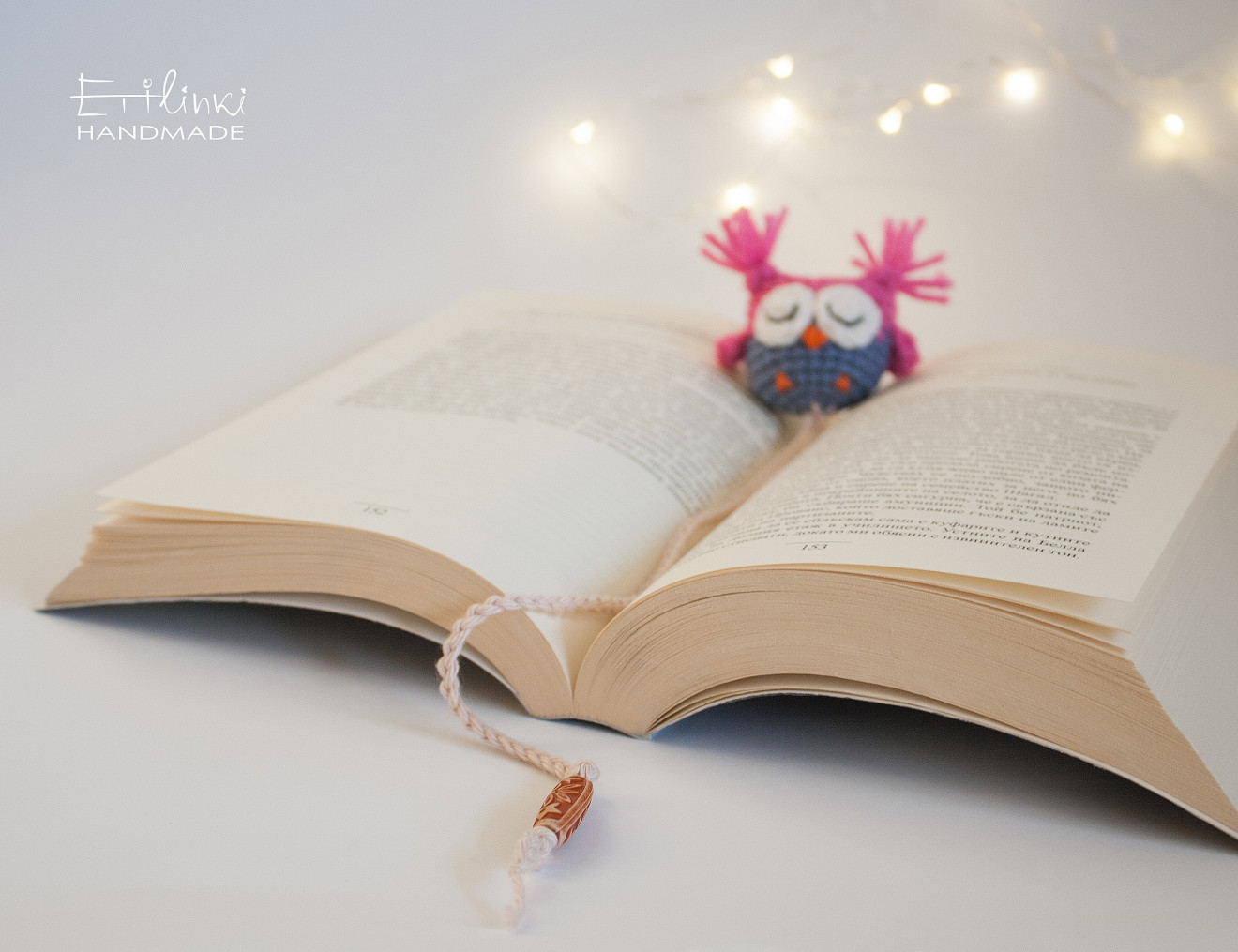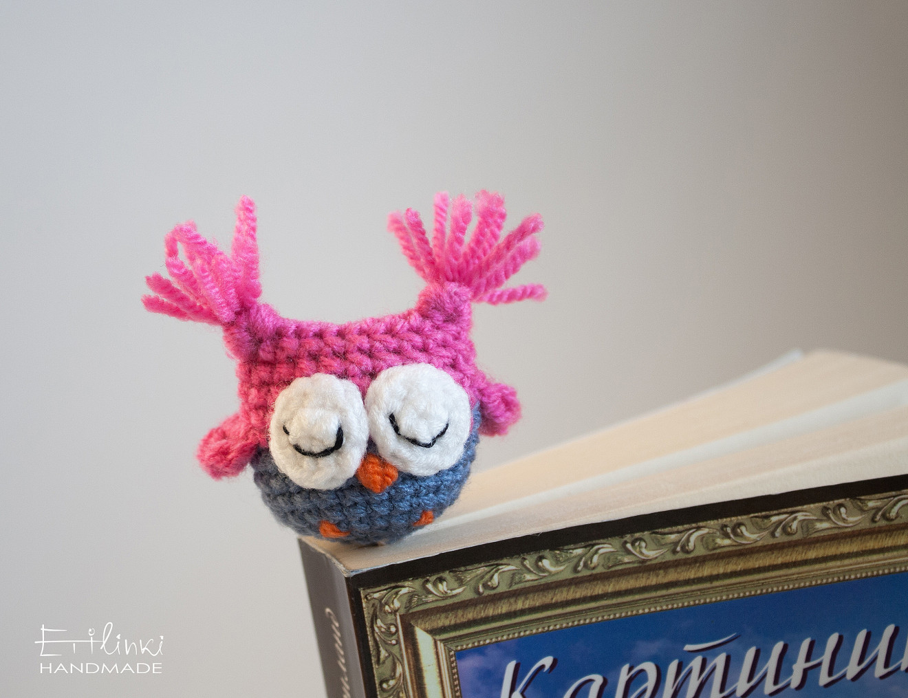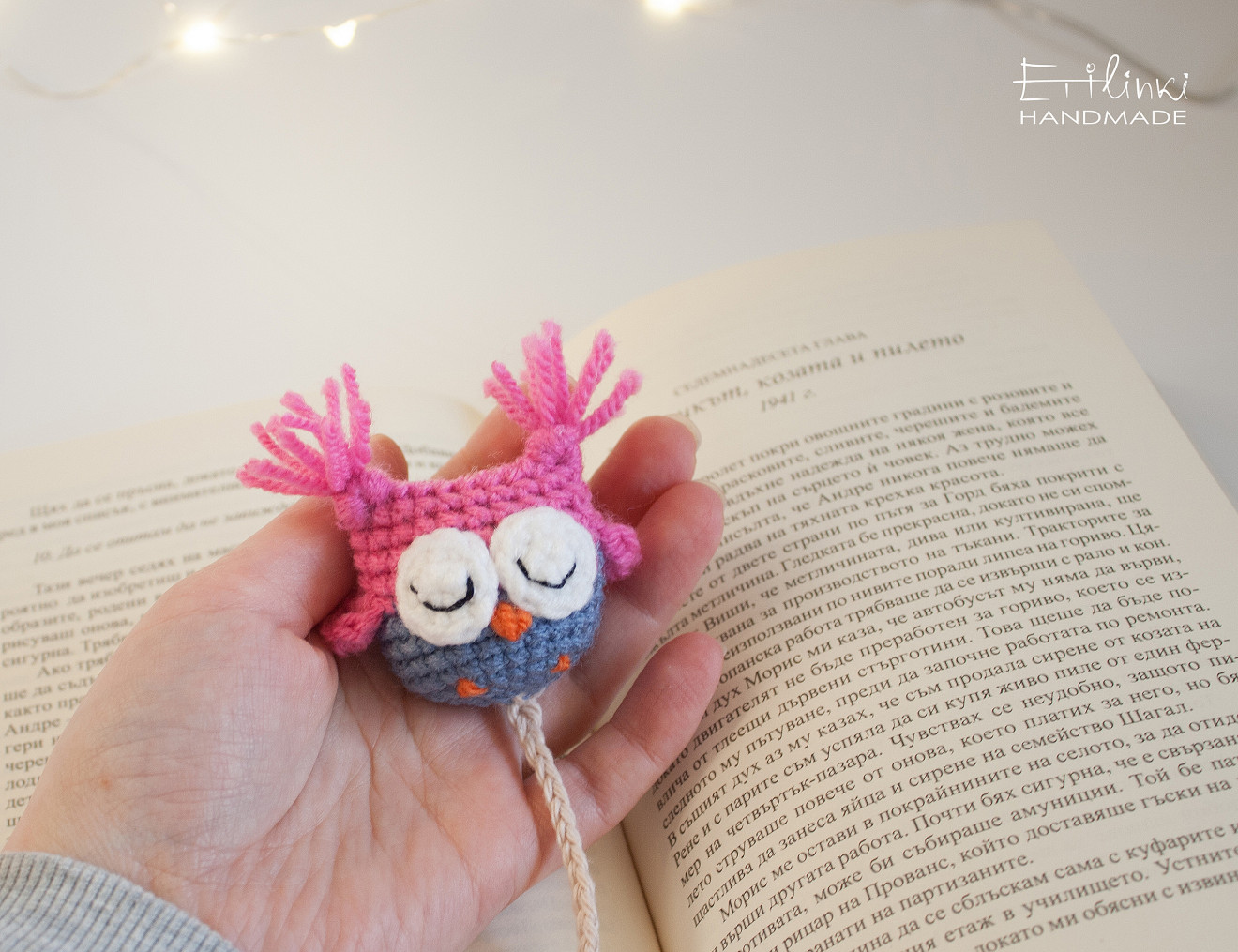 Отбелязка за книга - Рошаво бухалче/сова, ръчно изплетено на една кука в синьо и розово. Размер на бухалчето: ок.5 см във височина Дължина на разделителя (без бухалчето): ок. 25 см Идеален подарък за всеки, който може да бъде описан с едно от следните определения: - обича бухалчета; - обича да чете; - цени ръчната изработка; - обича да притежава уникални неща; - обича да се забавлява и се смее често. Този разделител е особено подходящ и за деца, за да ги насърчи да четат повече. Идея: разделителя може да се използва и за учебници, тефтери, рецептурници, дневници. Срок за доставка: от 1 до 5 работни дни Още ръчно изработени аксесоари и декорации може да разгледате в останалите мои обяви <a href="https://handmasters.bg/tvorci/845-etilinki">тук</a>.