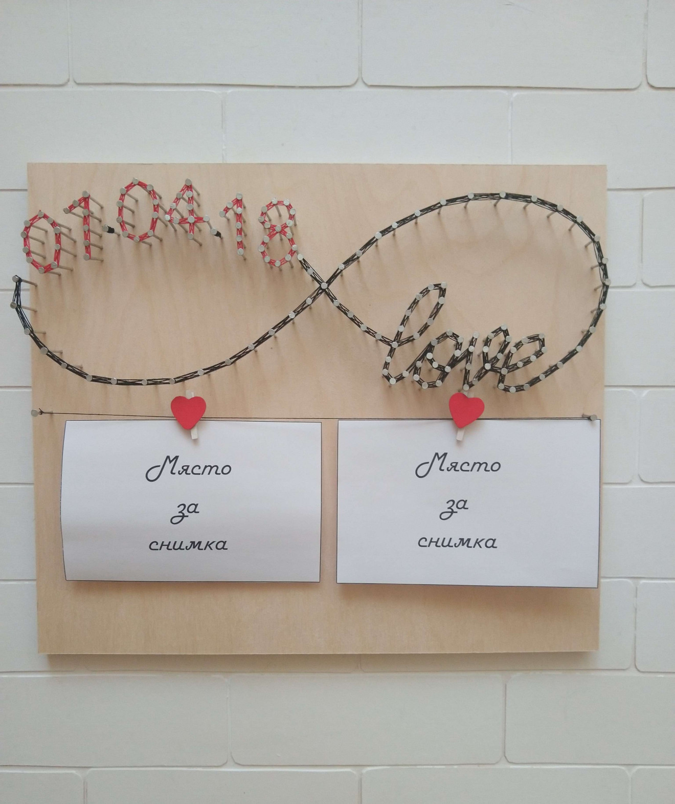 Дървено пано, изработено със String Art техника. Подходящо е за двойки. Размер: 30х25см #StringArt #подаръкзадвойка #любов