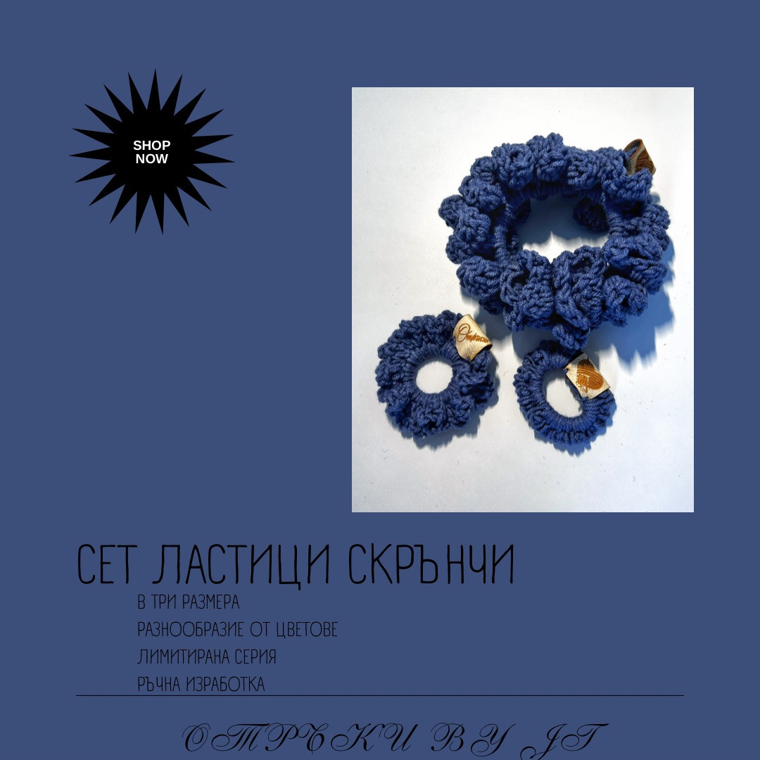 Идеален подарък за нежния пол. #отръкискрънчи са ластици изплетени от памучна прежда в три размера ,подходящи за всеки стил на обличане и щадящи косата,като не накъсват и заплитат. Количествата са отраничени,а до края на месец декември са на промо цена