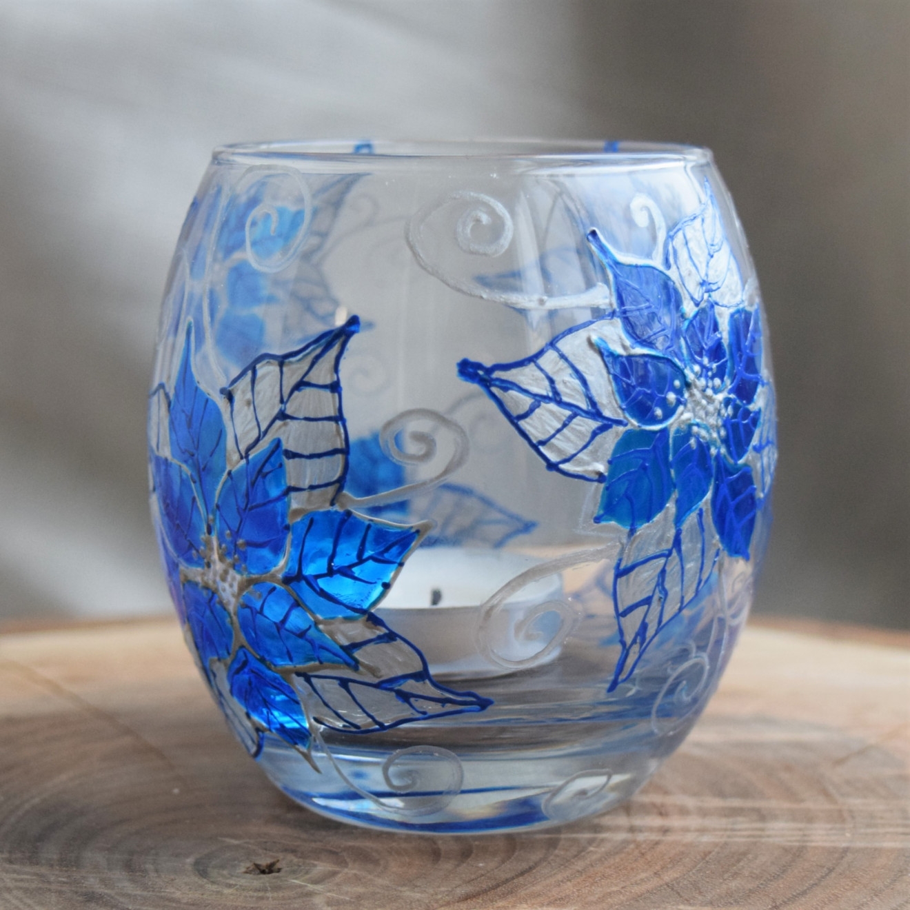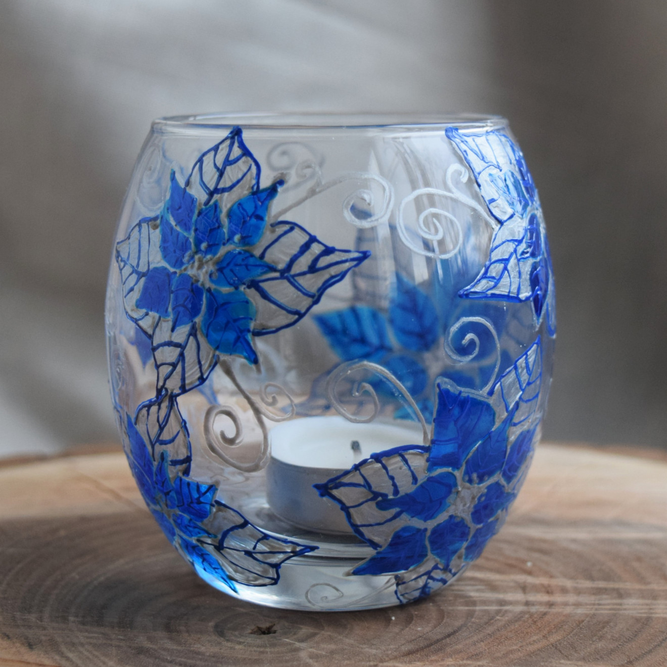 #ръчно #рисуван #свещник "#Коледни #Звезди" в синьо