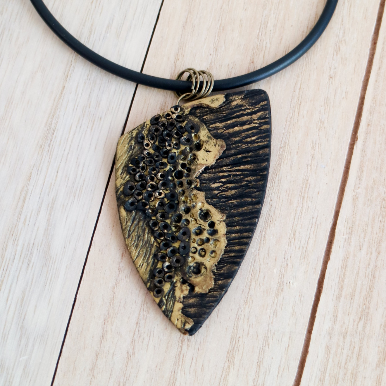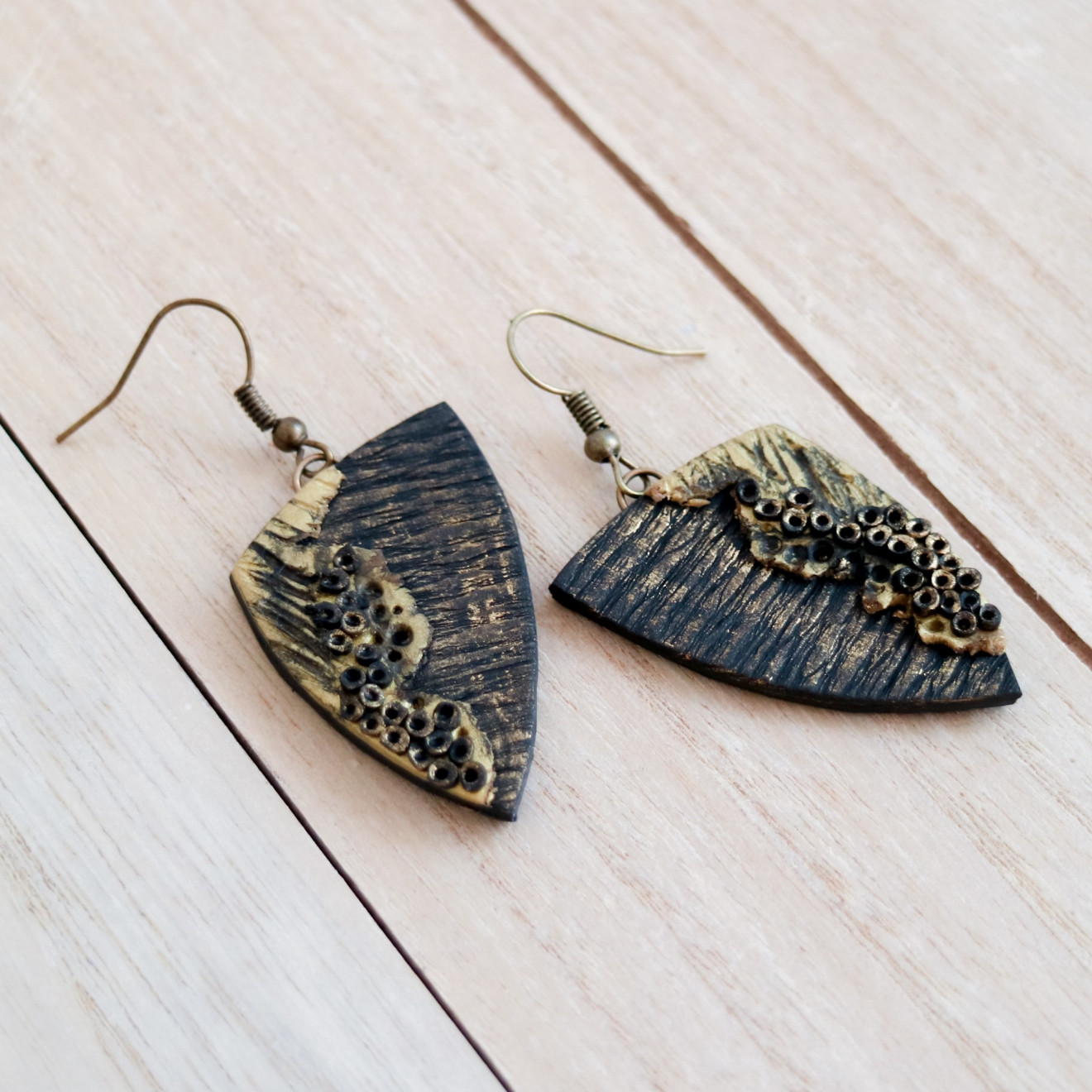 Абстрактен комплект бижута от полимерна глина - Дължина на колието: 43 см. - Размер на декоративнияелемент: 6.5 см. х 4 см. - Дължина на обецата: 5.5 см.
