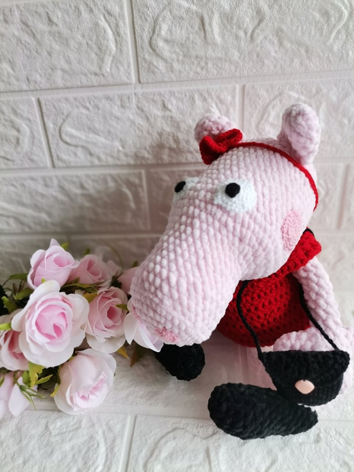 Плетена Пепа Пиг с чантичка и летна за глава. 30 см