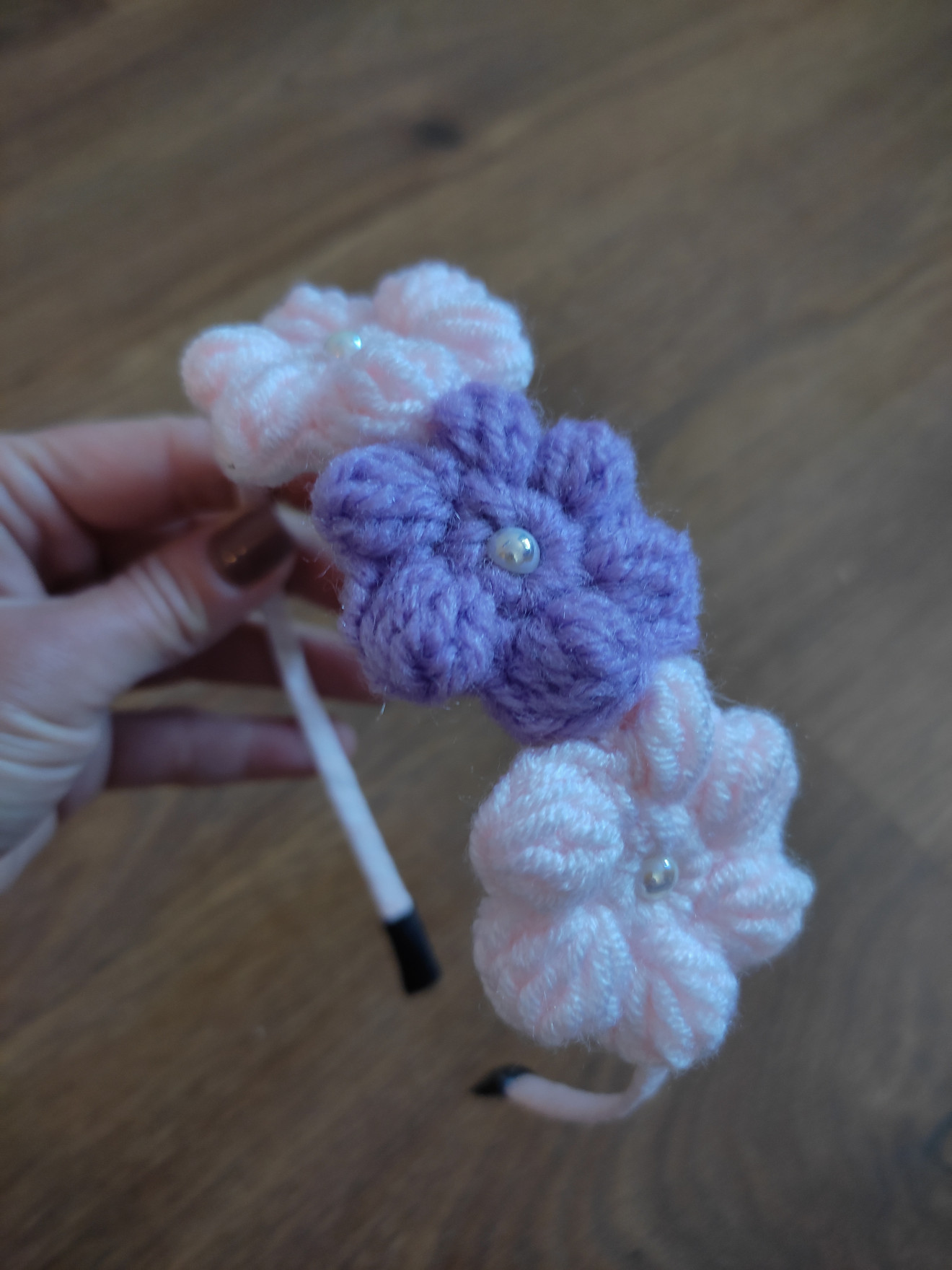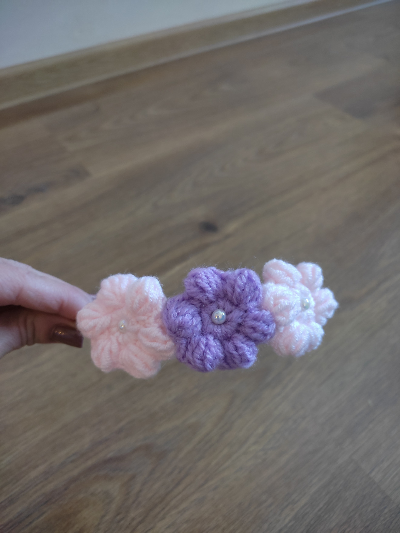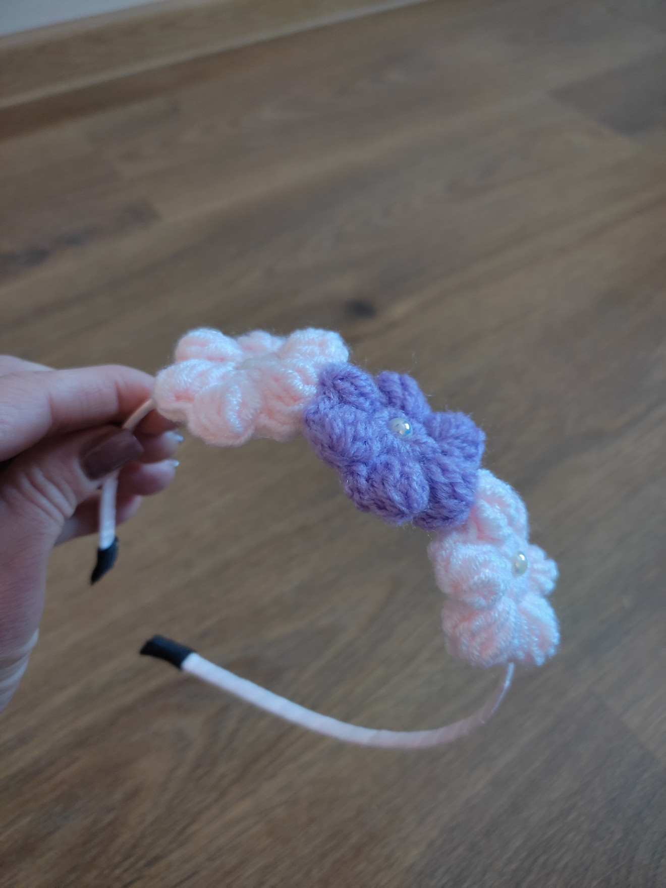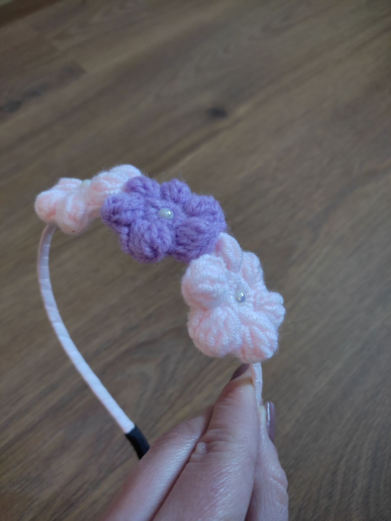 Ръчно изработена диадема от сатенена панделка и плетени флорални мотиви. Създадена да краси главата на малка госпожица.