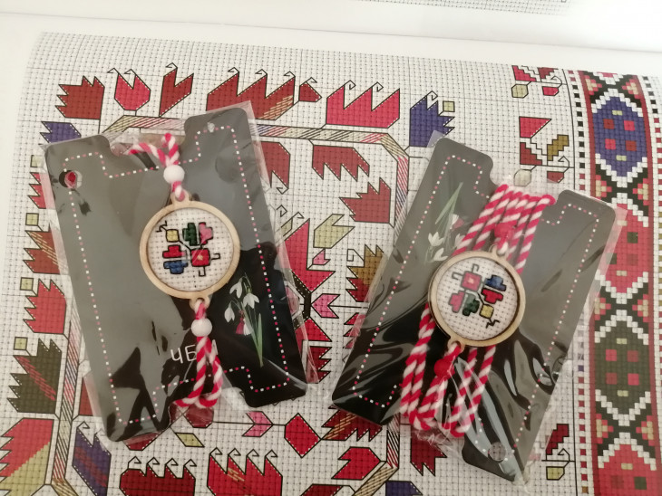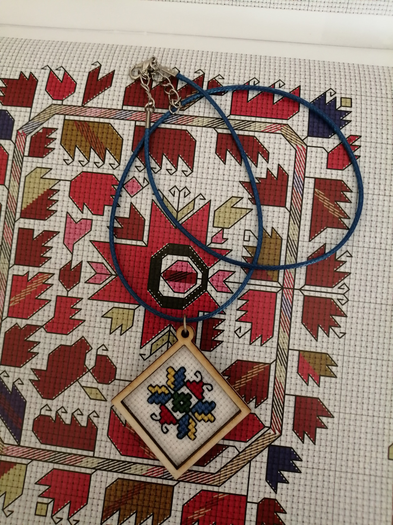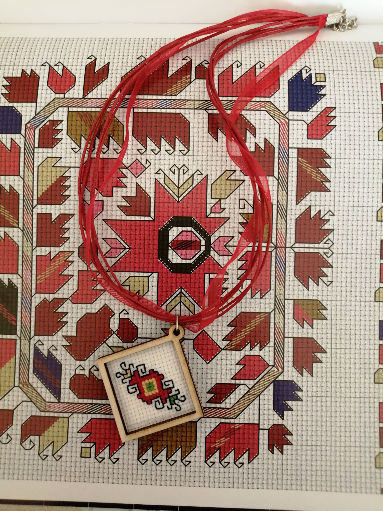 Ръчно бродирано колие, дървена основа 3 см. х 3 см.
