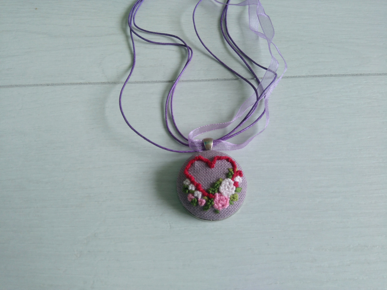 Едно влюбено-нежно #колие с ръчно бродирани сърце и розички. #Rheya #подарък #СветиВалентин #роза #сърце