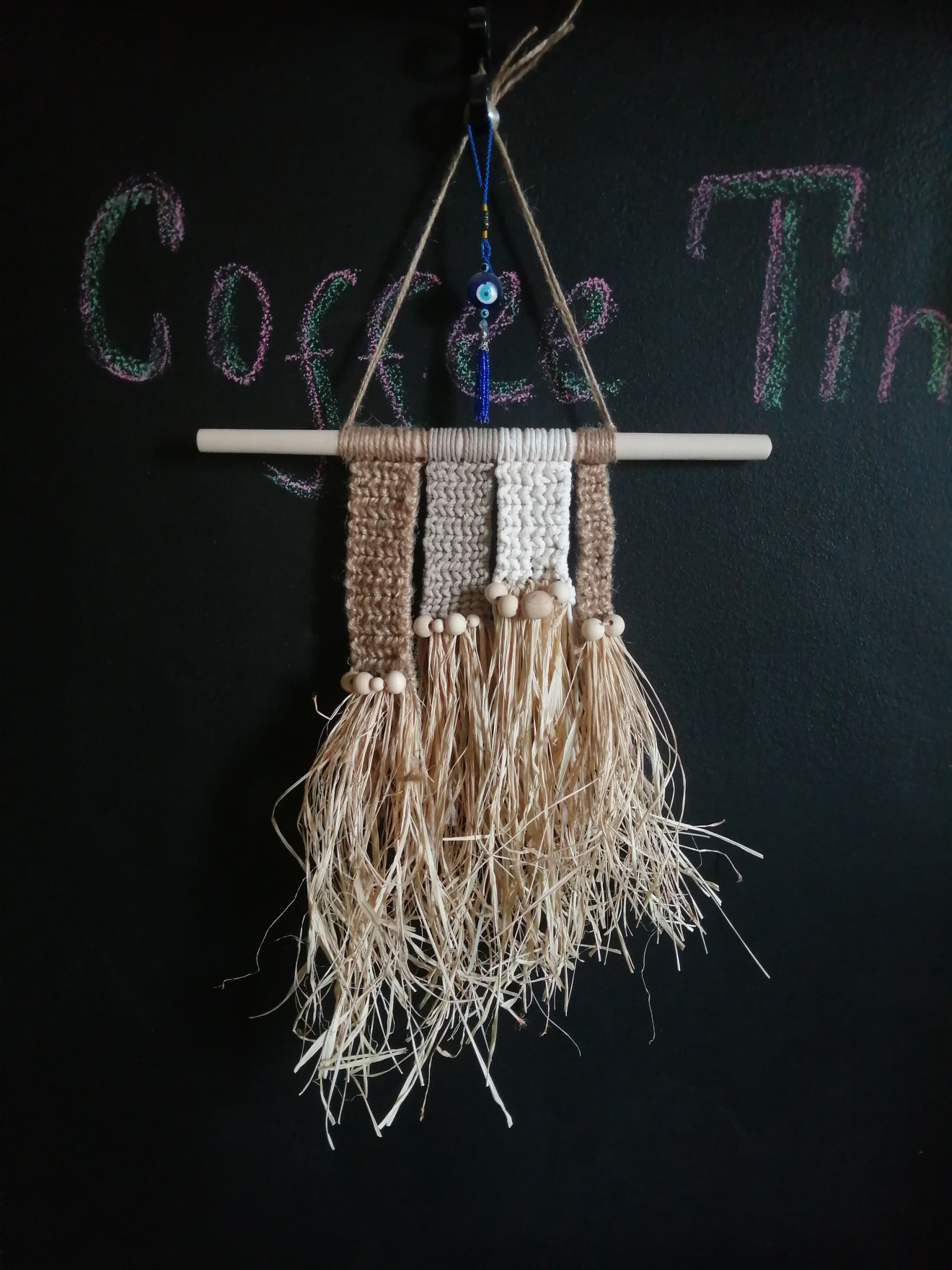 Бохо пано от рафия и прежда макраме