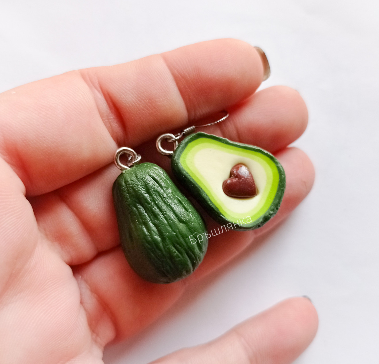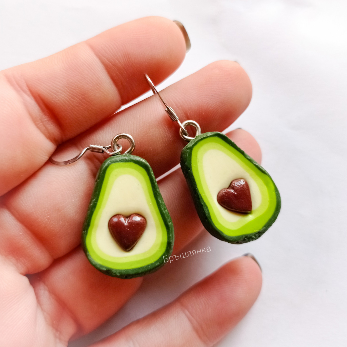 Обеци Авокадо, в голям формат от 3см дължина на висулката. С кукички от стомана, не предизвикват алергии. С възможност за английско окачване, също от стомана. #обеци #авокадо #полимернаглина #бръшлянка