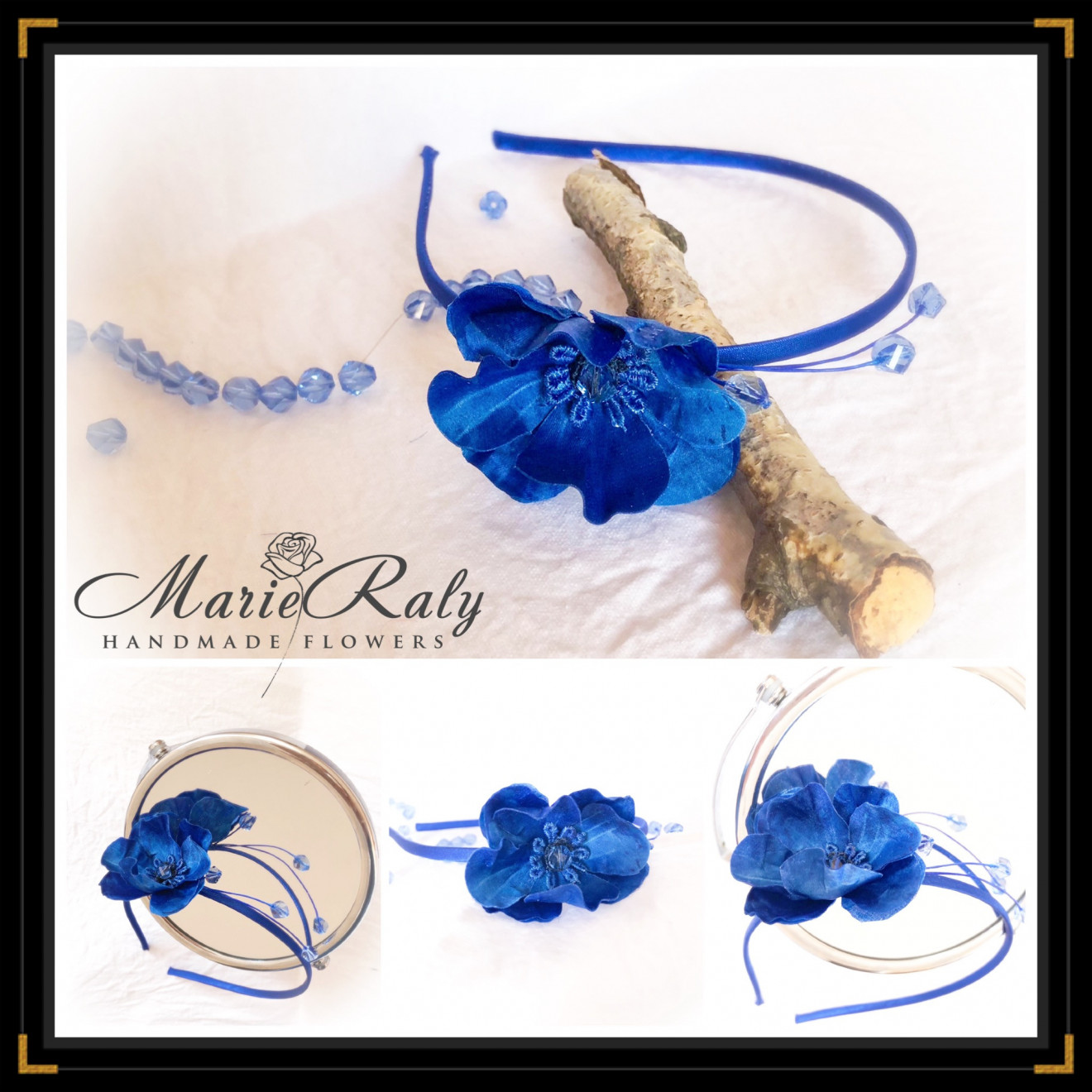 Диадема с ръчно изработено цвете от коприна и мъниста. Елегантна, изчистен стил. Подходяша за всякакви поводи.