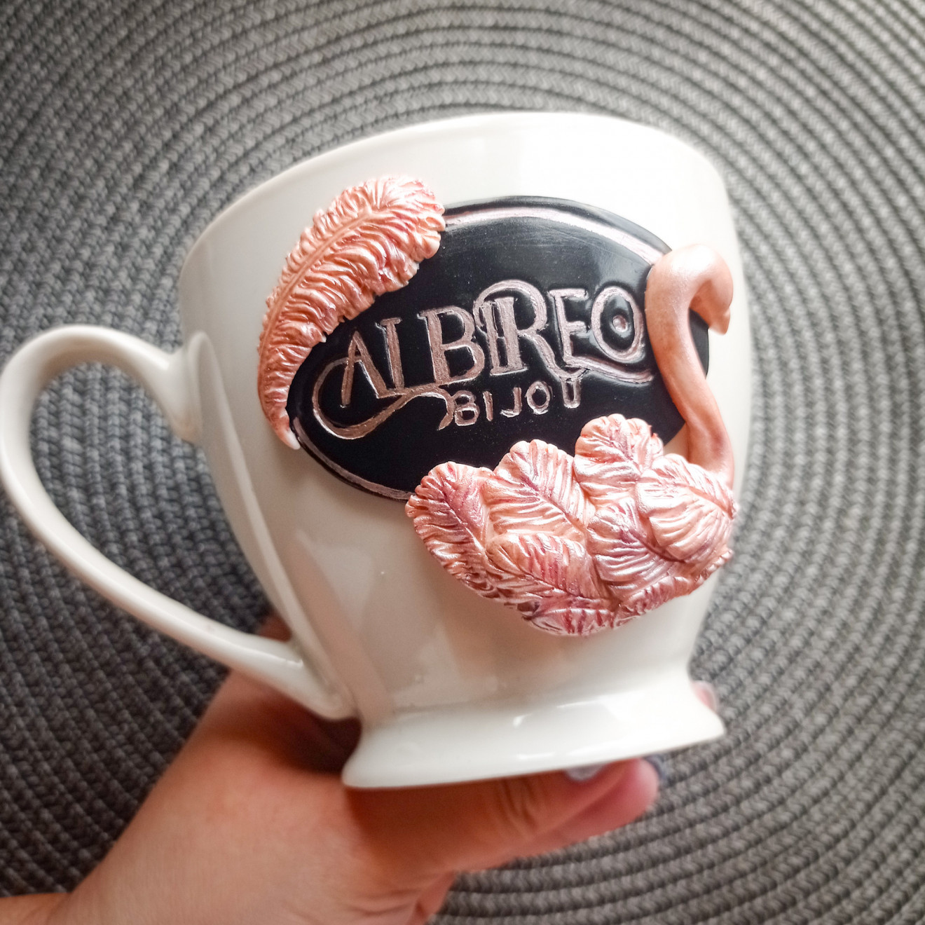 Керамична чаша с релефна, ръчно изработена декорация от полимерна глина. Изработена по поръчка с лого. Моля, за въпроси и актуален срок на изработка се свържете с мен. Цената е валидна за конкретния модел, като се калкулирана база брой и вид надписи, сложност и уникалност. Видео на чашката може да видите тук: https://vm.tiktok.com/ZML9TWV1X/ #чашасполимернаглина #чашаслого #чашазакафе #бръшлянка