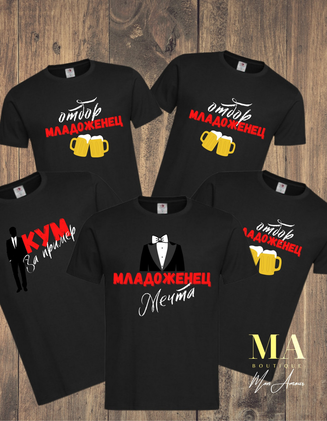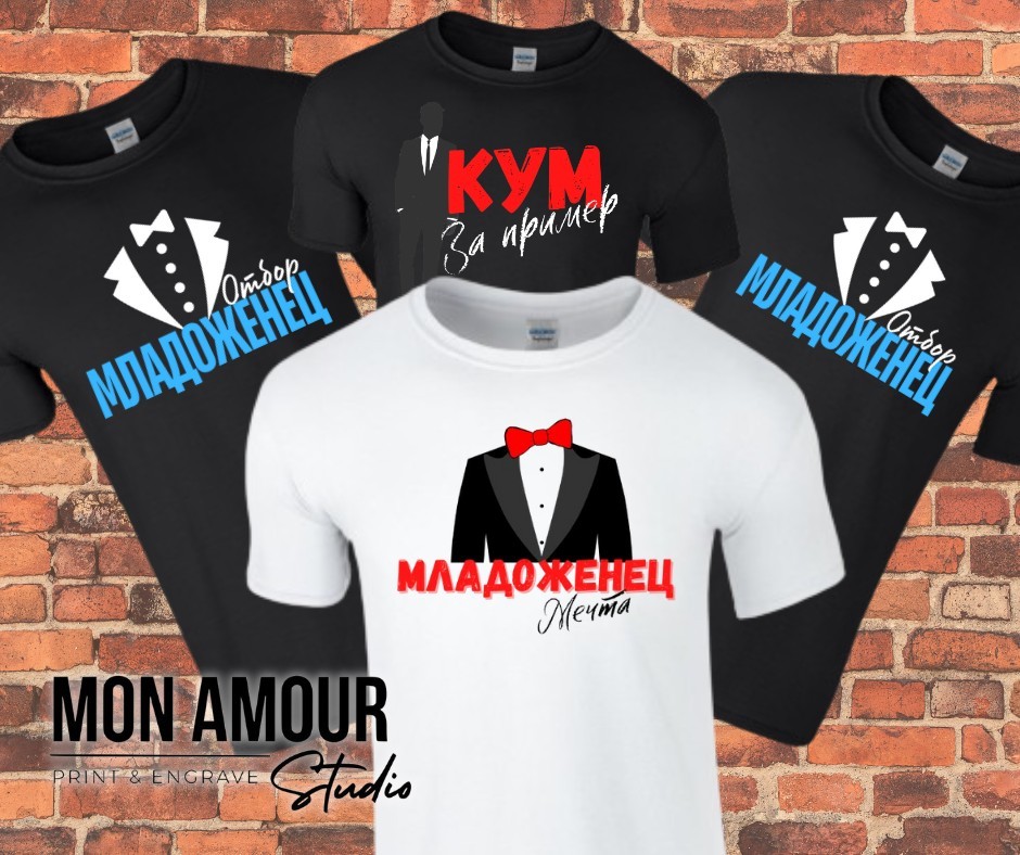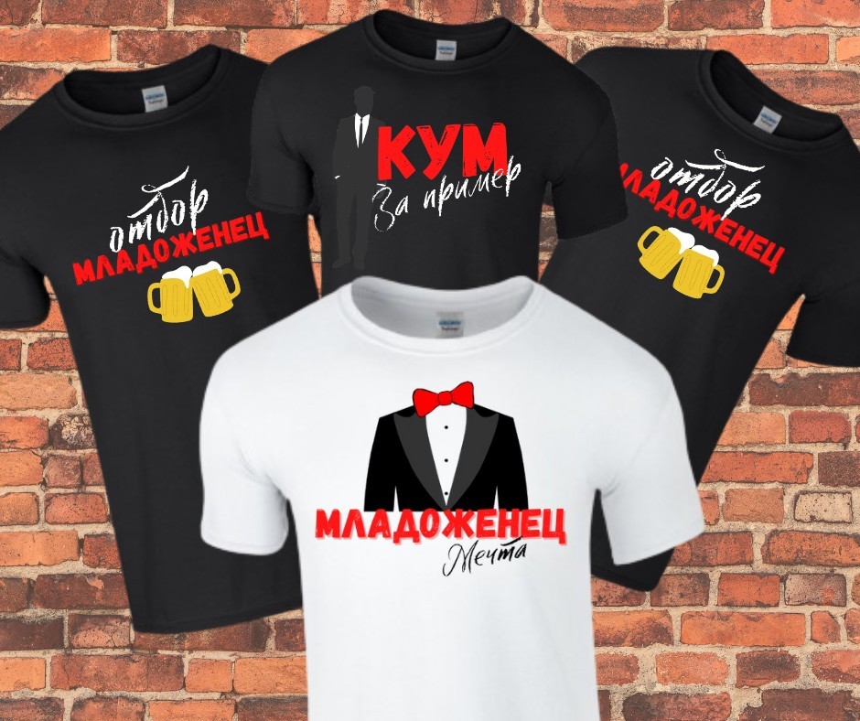 Направете празника още по-весел! Тематични тениски за вашето ергенско парти! Поръчайте тениска за кума, за младоженеца и за целия отбор!? Сега само за 26.50 лв.! ☎️ Тениските се предлагат в различни цветове и размери и могат да бъдат комбинирани по ваше желание. Цветове: бял,черен,сив и син цвят. Налични размери: От S до 4XL. Цена: За 1бр. тениска с включен едностранен печат 26,50лв. *По ваше желание може да се добави допълнителен печат на гръб или рамо. Цена за допълнителен печат 10.00 лв. Срок на изработка: От 3 до 5 работни дни. Доставка: До адрес или офис на Еконт. Начин на плащане: По банков път или наложен платеж. Вижте всички наши модели във фейсбук страницата ни : Мон Амур Бутик за подаръци