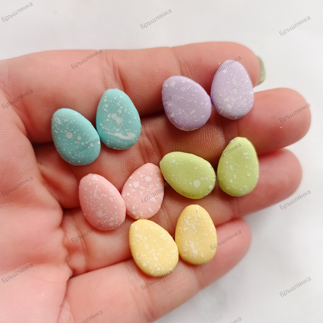 Обеци на винт, изработени от полимерна глина. С винт и пин от стомана, не предизвикват алергии. Налични по един брой от цвят. #обеци #яйца #великден #бръшлянка
