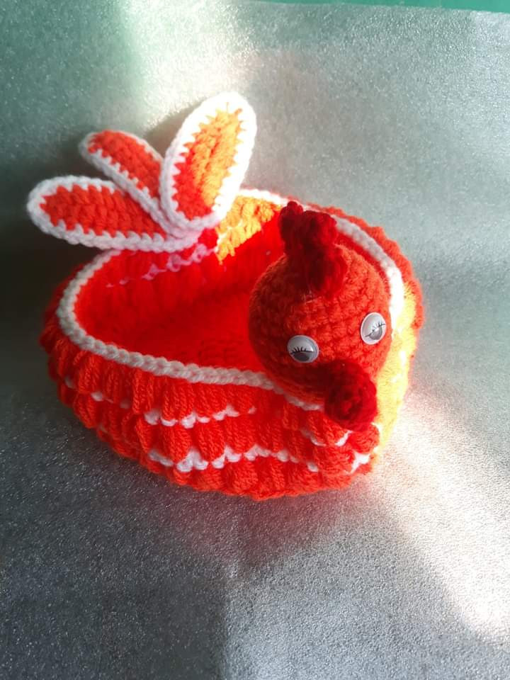 Изплетена с много любов и внимание към детайла. Бъдете уникални и оригинални на предстоящите празници :) Диаметъра на кошницата е 15см., а височината - 4,5см. Може да бъде изплетена в желания от вас цвят, както и да променим размера. Изплитането отнема само няколко часа, така че, не се притеснявайте да ми пишете и да я направим по ваш вкус и желание. :)