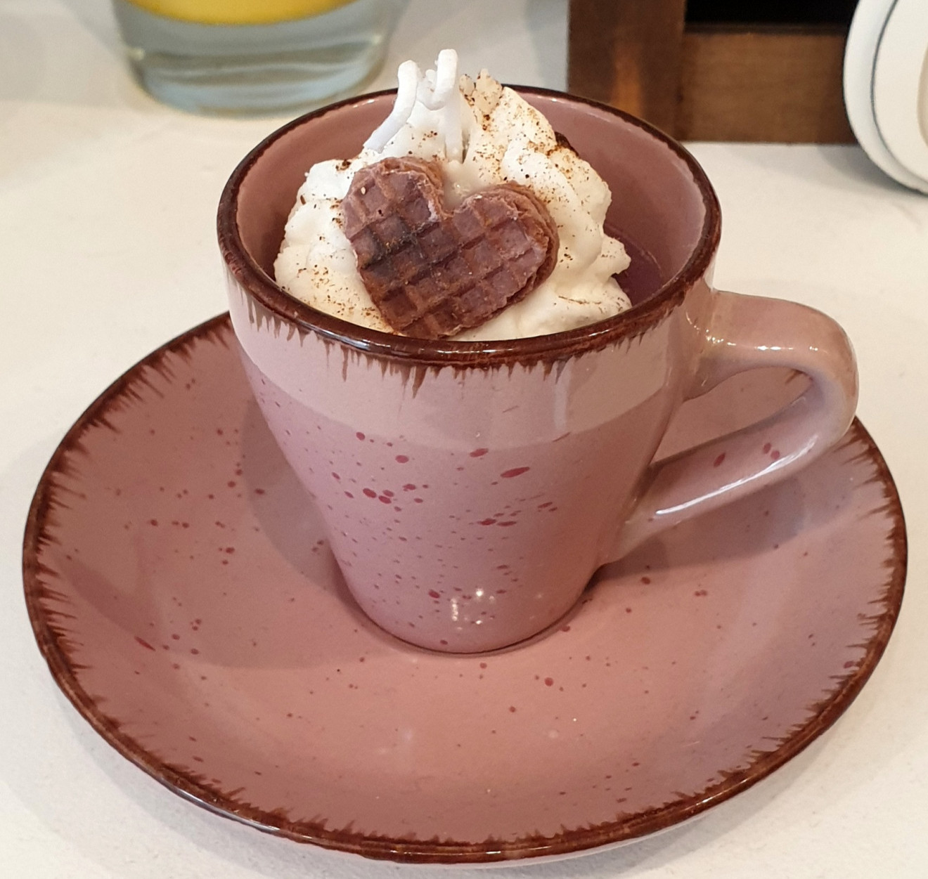 Ръчно правена ароматна свещ от чист соев восък в малка чашка за кафе с чинийка
