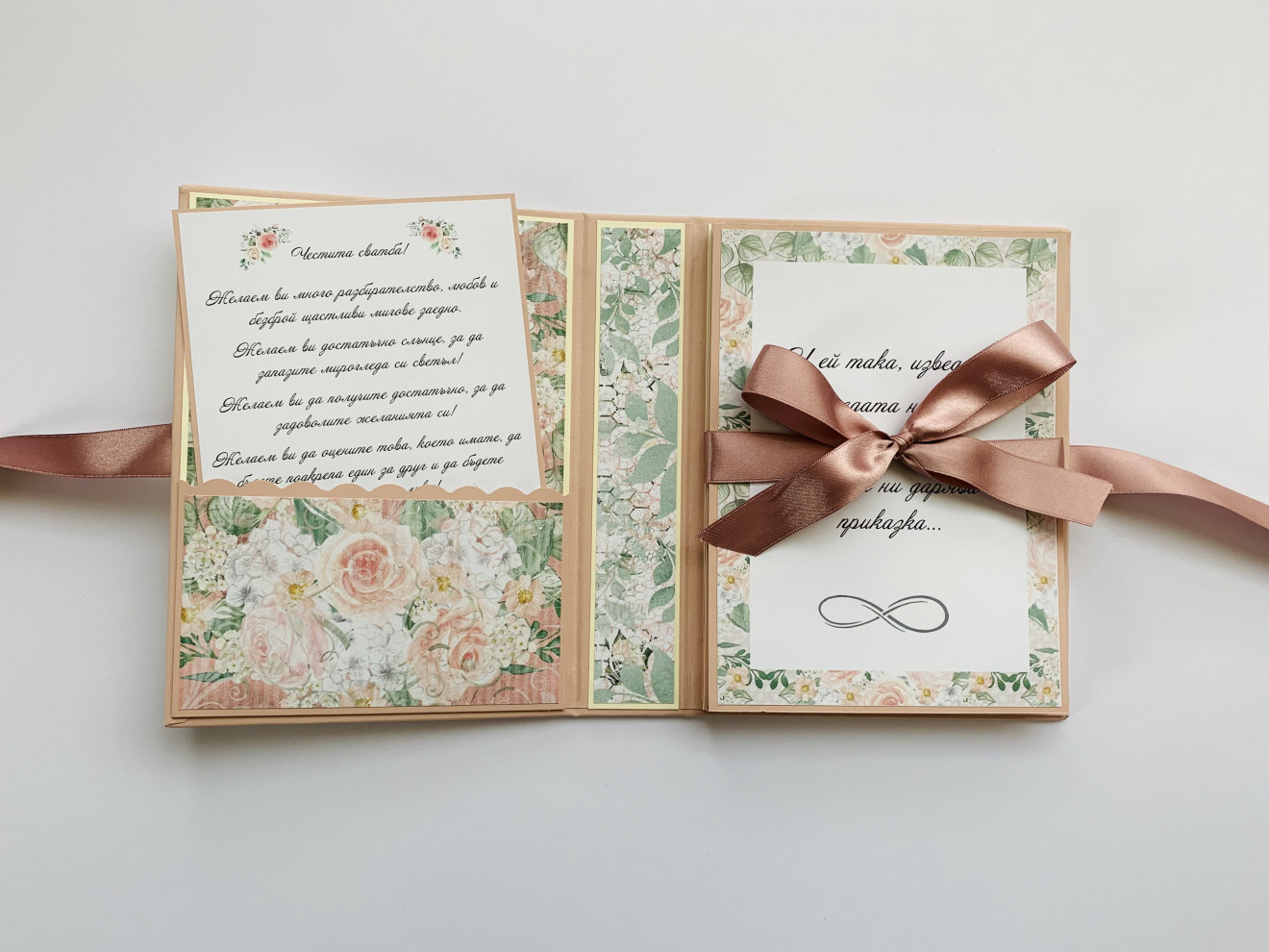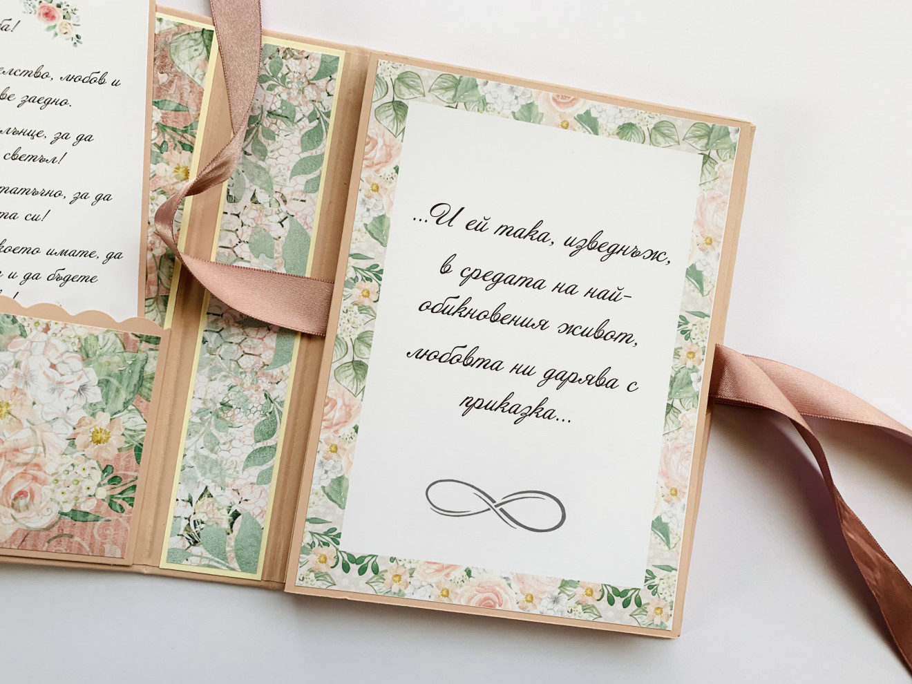…и ей така изведнъж, в средата на най-обикновения живот, любовта ни дарява с приказка… ?? Албумът е тип хармоника, с размер 18х13см; Побира до 14 снимки в размер 10х15см; С джобче за поставяне на картичка с пожелание. #сватба #ръчнаизработка #албум #сватбеналбум
