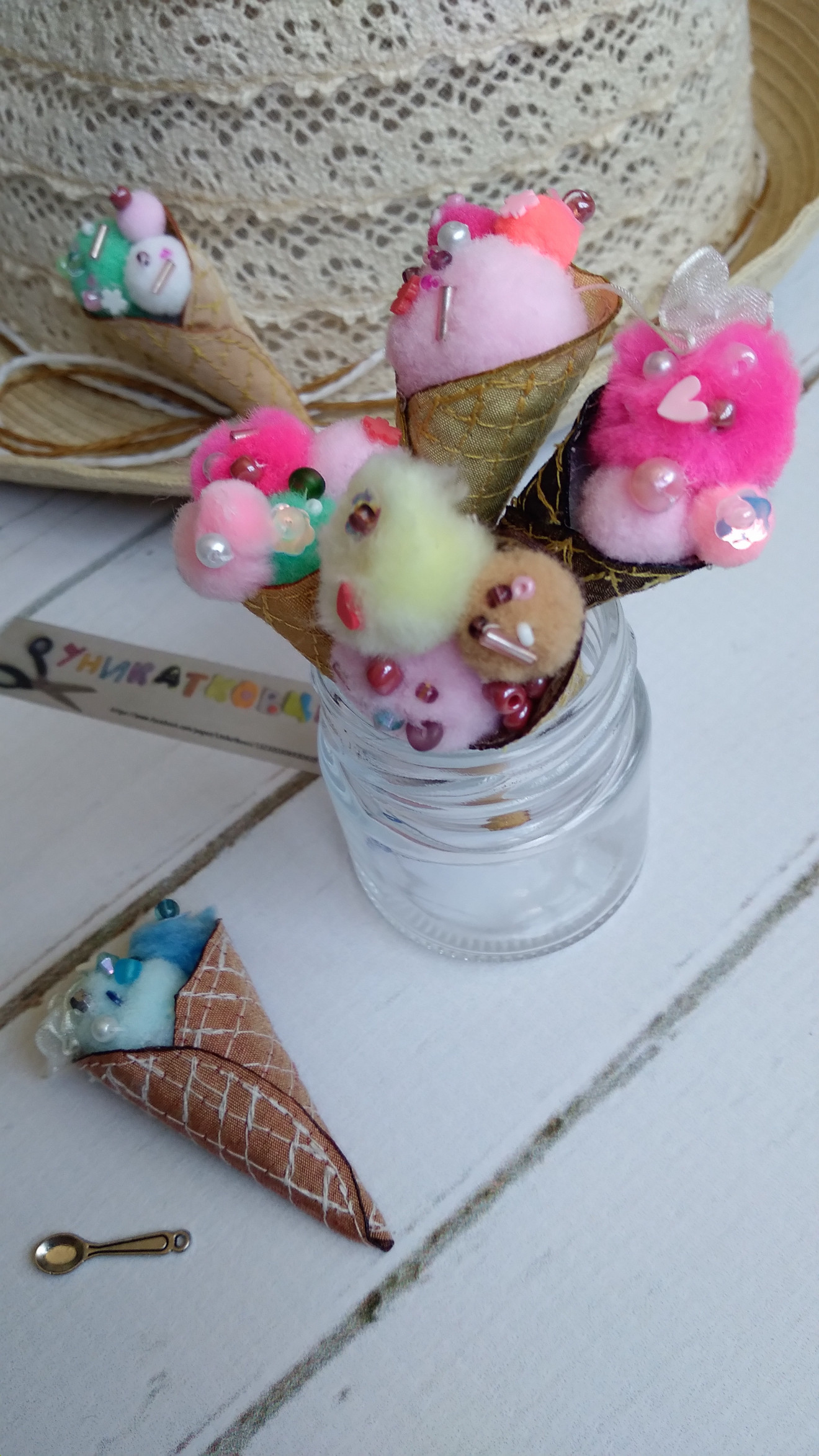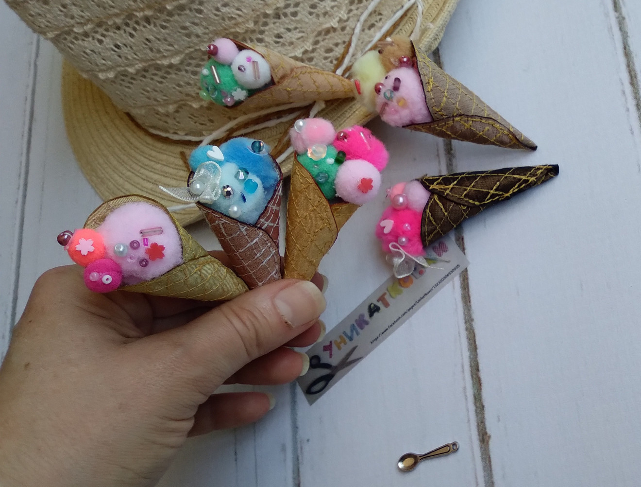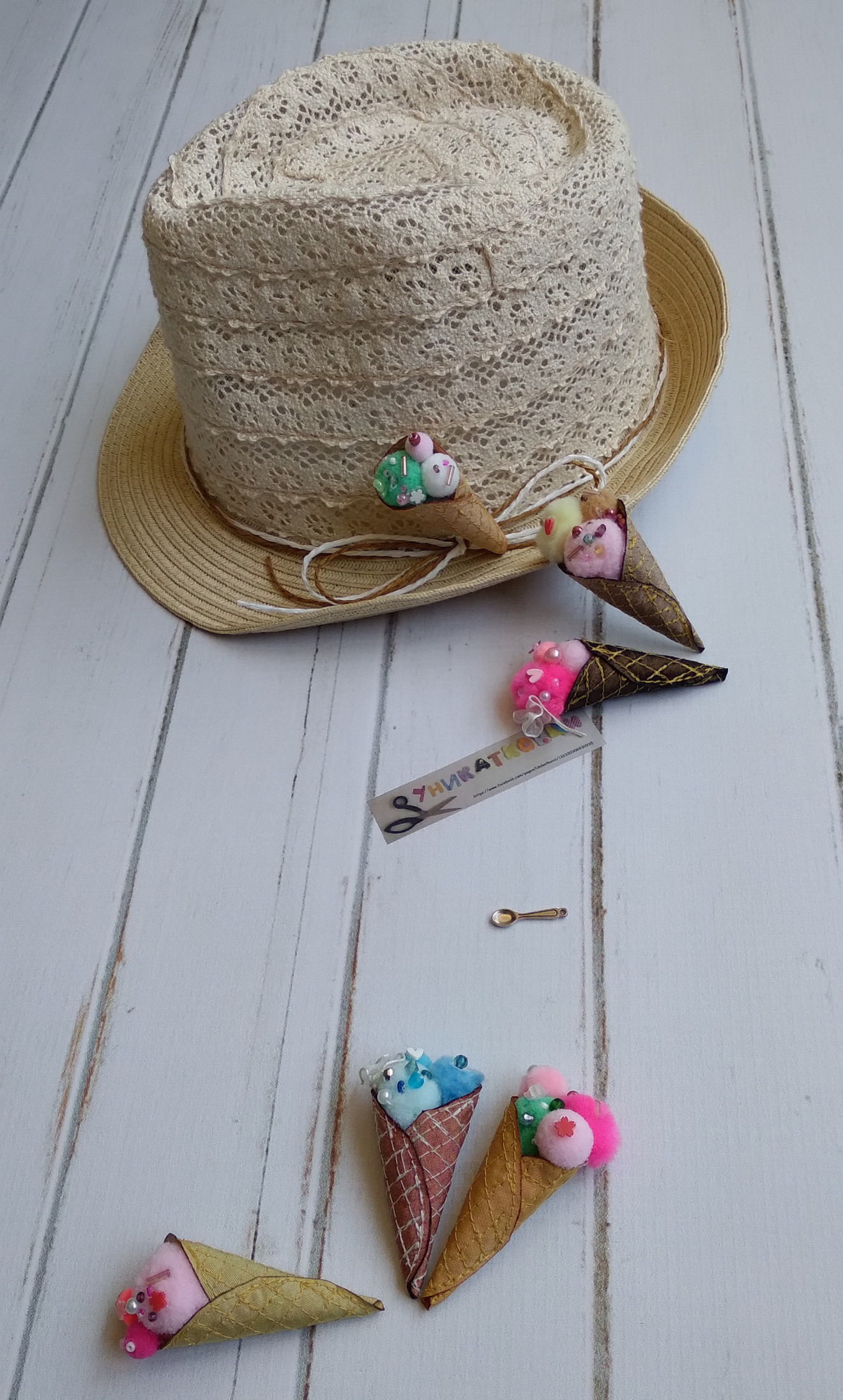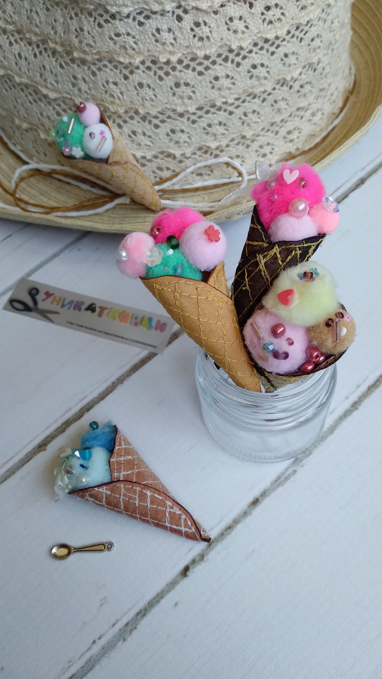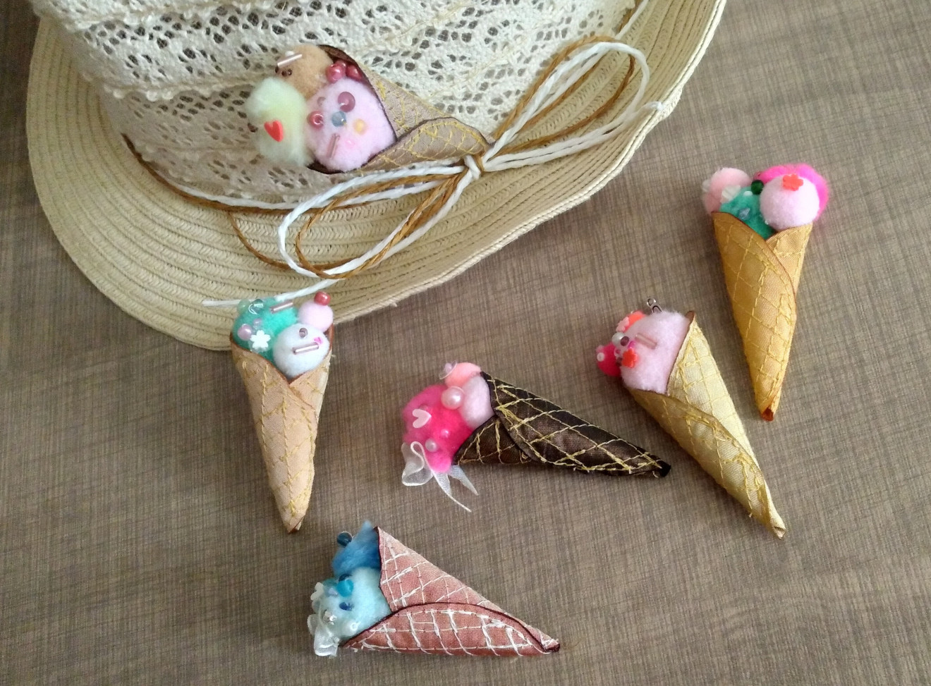 Текстилна брошка "Сладолед" Размер- ок. 6-8 см, в зависимост от количеството "сладолед" ?