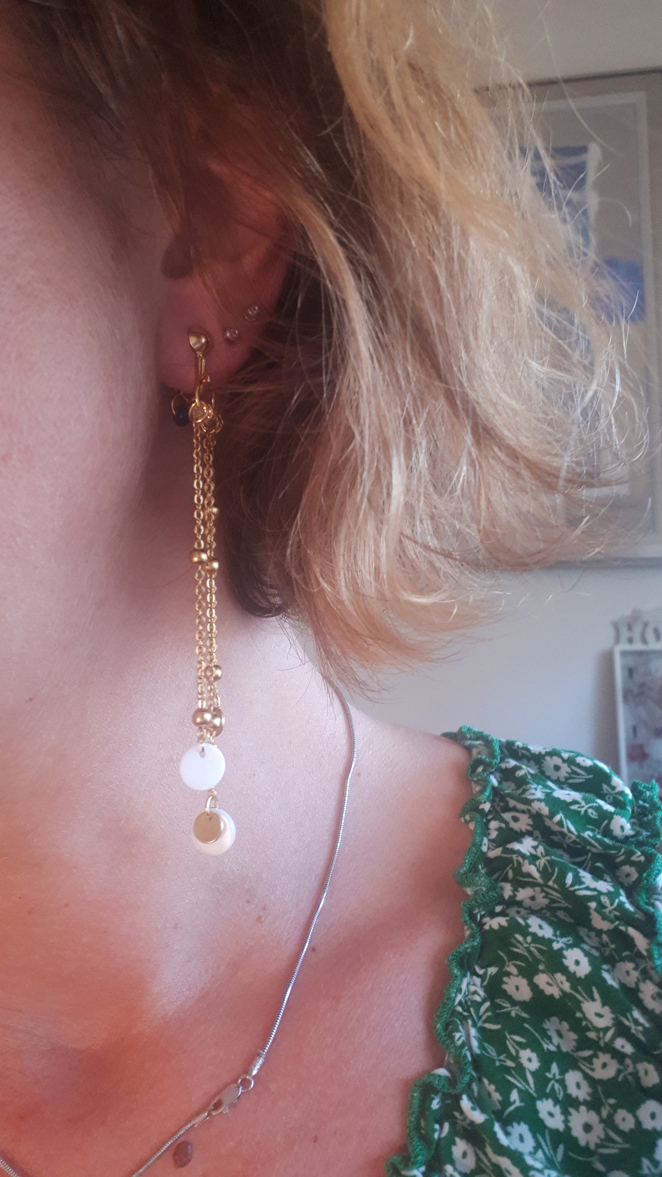 Обеци на клипс, кристални мъниста,седеф и неръждаема стомана. Обеците могат д се изработят и с различно окачване- кукичка, винт