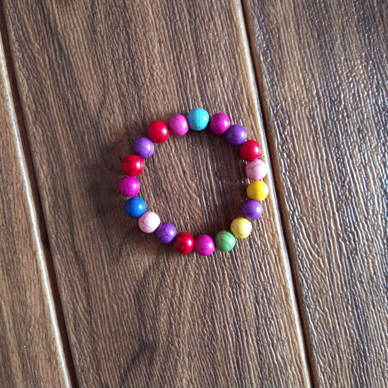 Ръчно изработена гривна от полускъпоценни камъчета Тюркоаз 10 мм. Налична в дамски размер М. Тюркоазът на езика на скъпоценните камъни, символизира бодростта на душата. Всеобщо смятан за носител на мир и късмет, се счита че е мощен антидот против злите очи и за щастлив камък за актьори и певци. Арабска поговорка гласи: „Тюркоазът, даден от любяща ръка, носи със себе си щастие и добър късмет.”Силите на изобилието и защитата са силно изразени в легендите около значението на този камък. Бил е поставян в юздите на конете, за да се гарантира, че няма да се случат злополуки с ездачите – смята се, че магическите му свойства поглъщат всяка вреда, насочена към носителя му. Побутва човек да знае, говори и изживее собствената истина. Това е добър камък, когато се нуждаете от помощ за подбиране на точния момент за нещата. Минерала е изключително полезен за разказване на истории, журналистика и писане от всякакъв вид. Подходящ е за съзерцаване, докато чакате вдъхновение.
