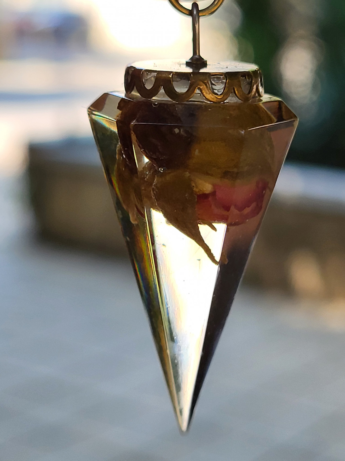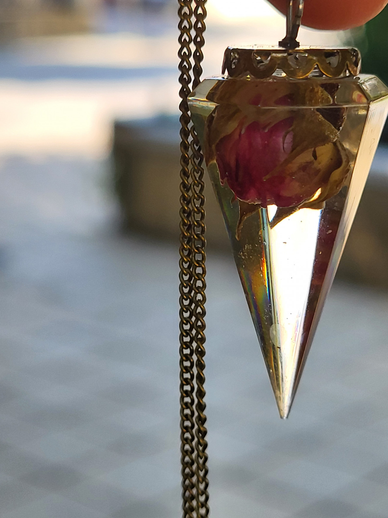 Ръчно изработен медальон от кристална епоксидна смола с вградена цяла розичка