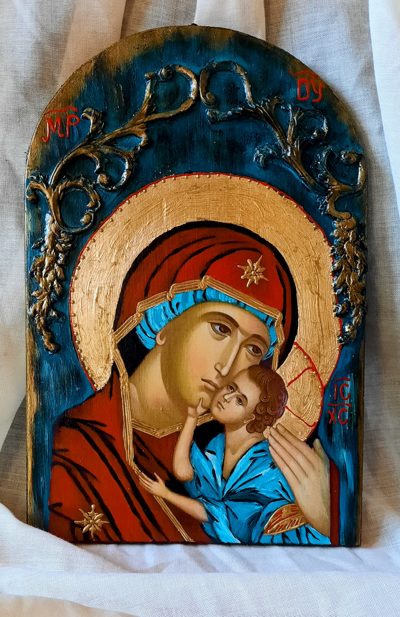 Икона Божията майка с Младенеца "Умиление ". Размери на иконата 30/20 см.