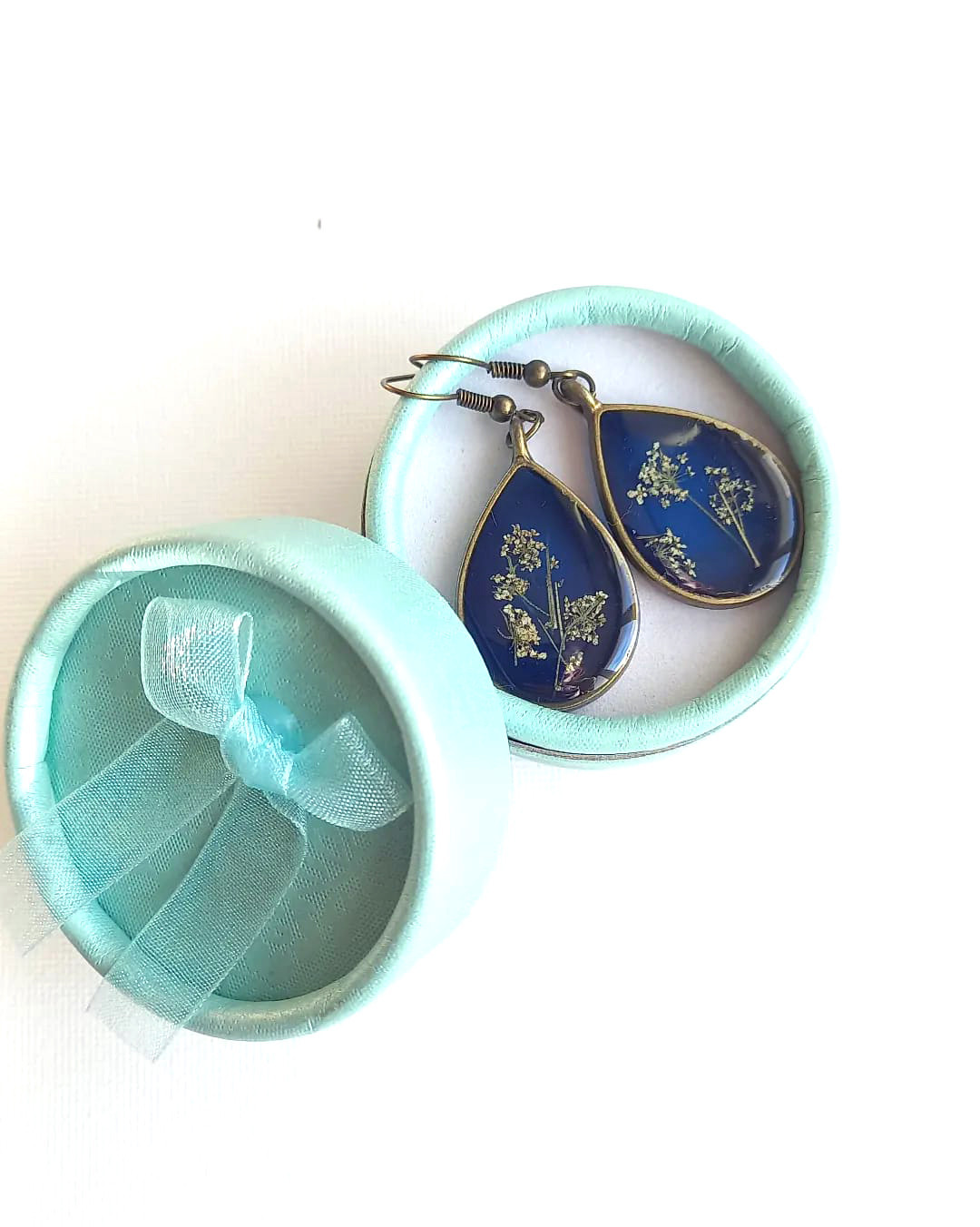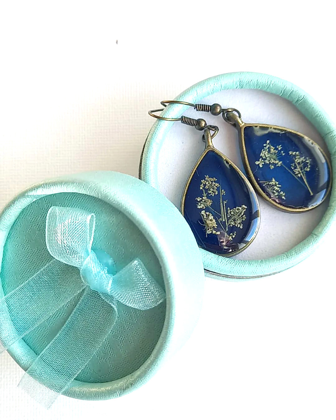 Ексклузивни обеци "Мурано" от бижутерска епоксидна смола с хербаризирани цветенца в метална основа (цвят - антик бронз). Обеците са вдъхновени от италианските майстори на стъклените вълшебства от Мурано? Единствен и неповторим модел - уникат? Дължина заедно с накрайниците - 6 см ЦЕНА 25 ЛВ ДОСТАВКАТА Е ЗА СМЕТКА НА КУПУВАЧА Изпращаме в подаръчна кутийка! ? При интерес пишете на лични съобщения? Изработка - Flora Bijuta