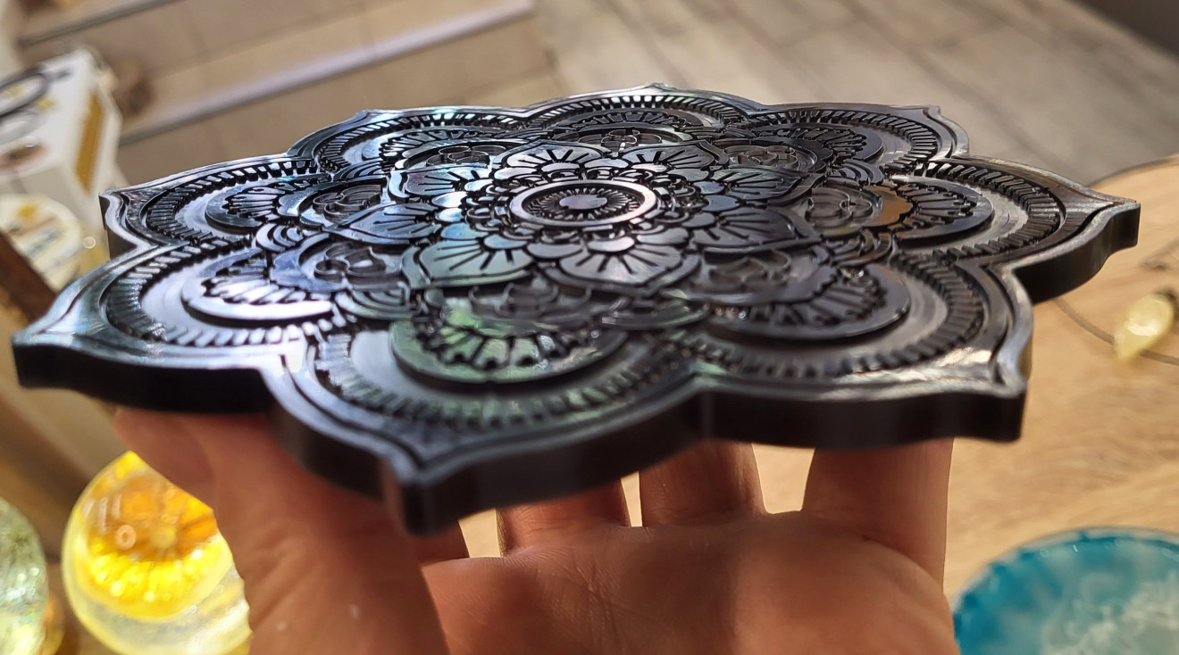 Ръчно правена подложка от кристална епоксидна смола Мандала