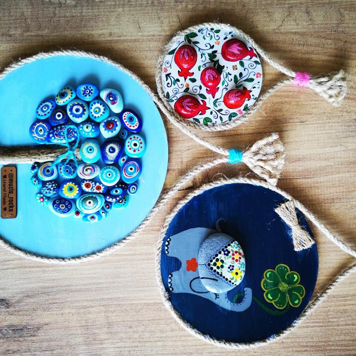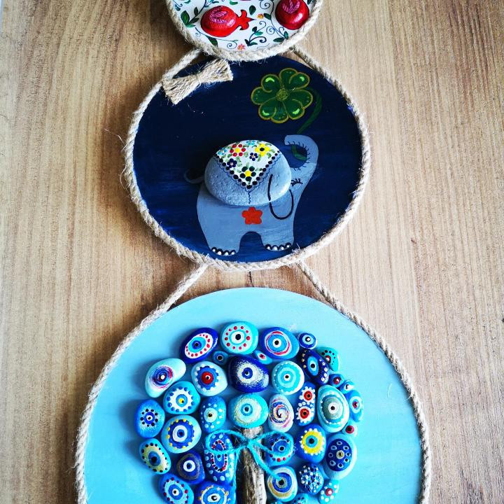 Сила, късмет и дълголетие... ? ??? Един прекрасен Ръчноизработен сет за вашия дом, офис или тераса.??️ ? Слонът, символ на мъдрост и сила, ? Назар, е амулет във форма на око, за който се смята, че предпазва от „зли очи“ (уроки), ? Нарът, символ на дълголетието. ? Детелина, символ на добродетел и късмет. За мен беше наистина голямо удоволствие да го сътворя... ? За повече информация пишете на ??? ©️ All rights reserved Мuzi.yasar - дизайнерски аксесоари за дома