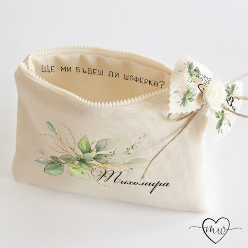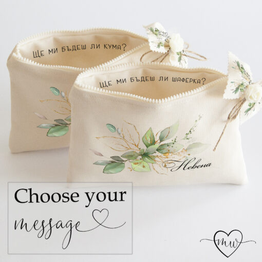 Ръчно изработени, персонализирани козметични чанти, които ще бъдат идеалния подарък за вас или ваша приятелка. ♡ Материал: висококачествен полиестерен плат в красив светло-бежов цвят. ♡ Размери: около. 22см x 14см ♡ Дигитални щампи, които не избледняват и не се лющят. ♡ Много гъвкав и издръжлив пластмасов цип. В полето за персонализация добавете: ♡ име за отпред ♡ Вътрешно съобщение ( ако искате да има такова) Повече продукти с този дизайн, може да намерите тук: За въпроси и поръчки, моля не се колебайте да се свържете с мен, Мартина
