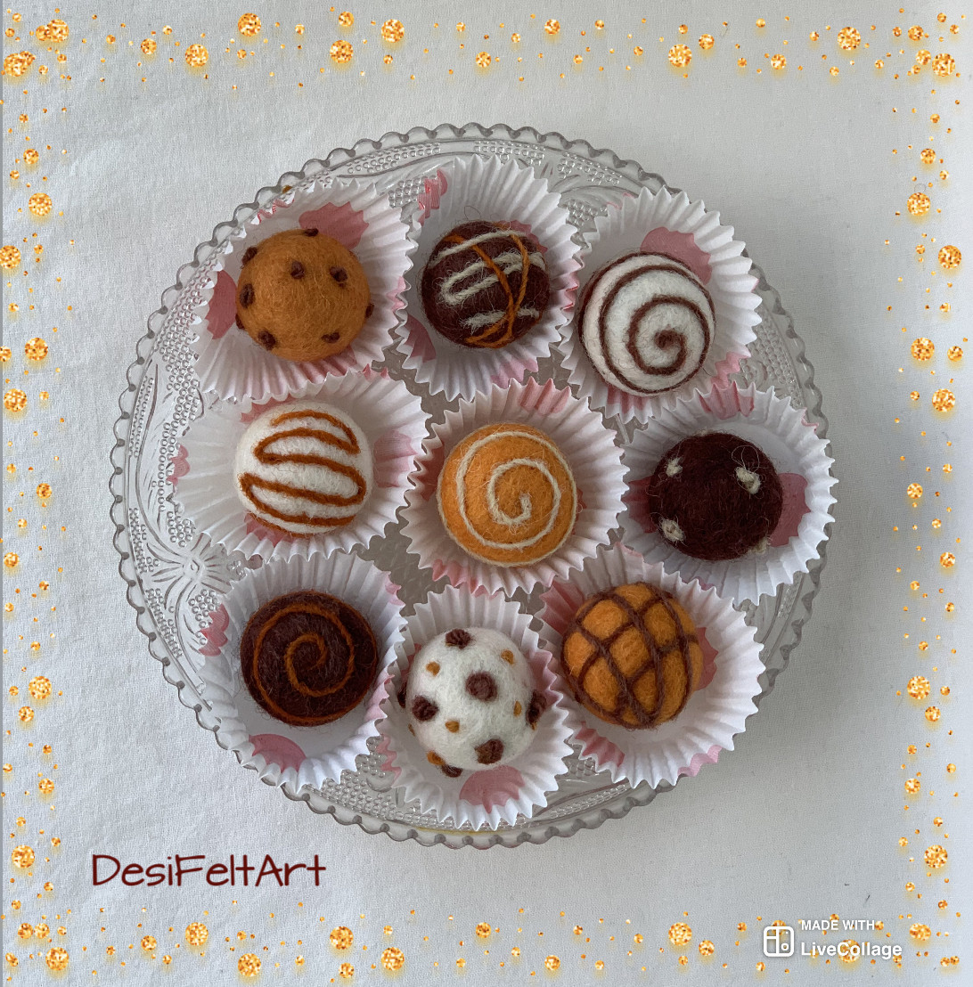 Бонбоните са чудесен подарък - различен и закачлив жест за всеки повод 😋 Не се топят и не свършват, винаги ще са до Вас 😀 Ръчно изработени от 100% българска вълна, чрез смесена техника (сухо и мокро плъстене). Размери около 3см (диаметър) Могат да бъдат изработени и в цветове по Ваша идея. Цената е за кутия от 9 броя бонбони