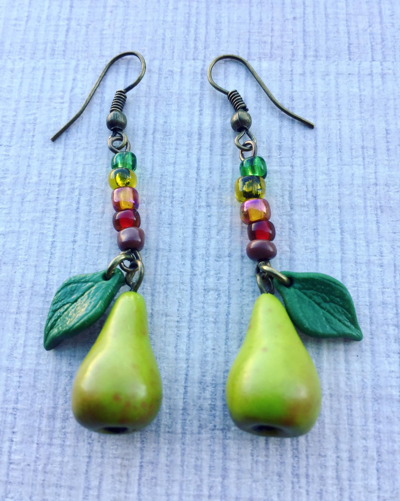 Ръчно изработени обеци от полимерна глина и стъклени мъниста