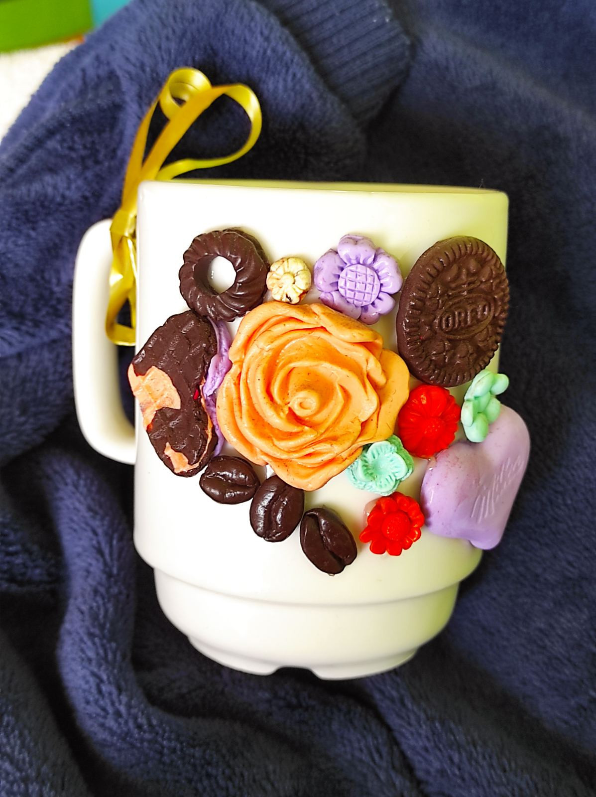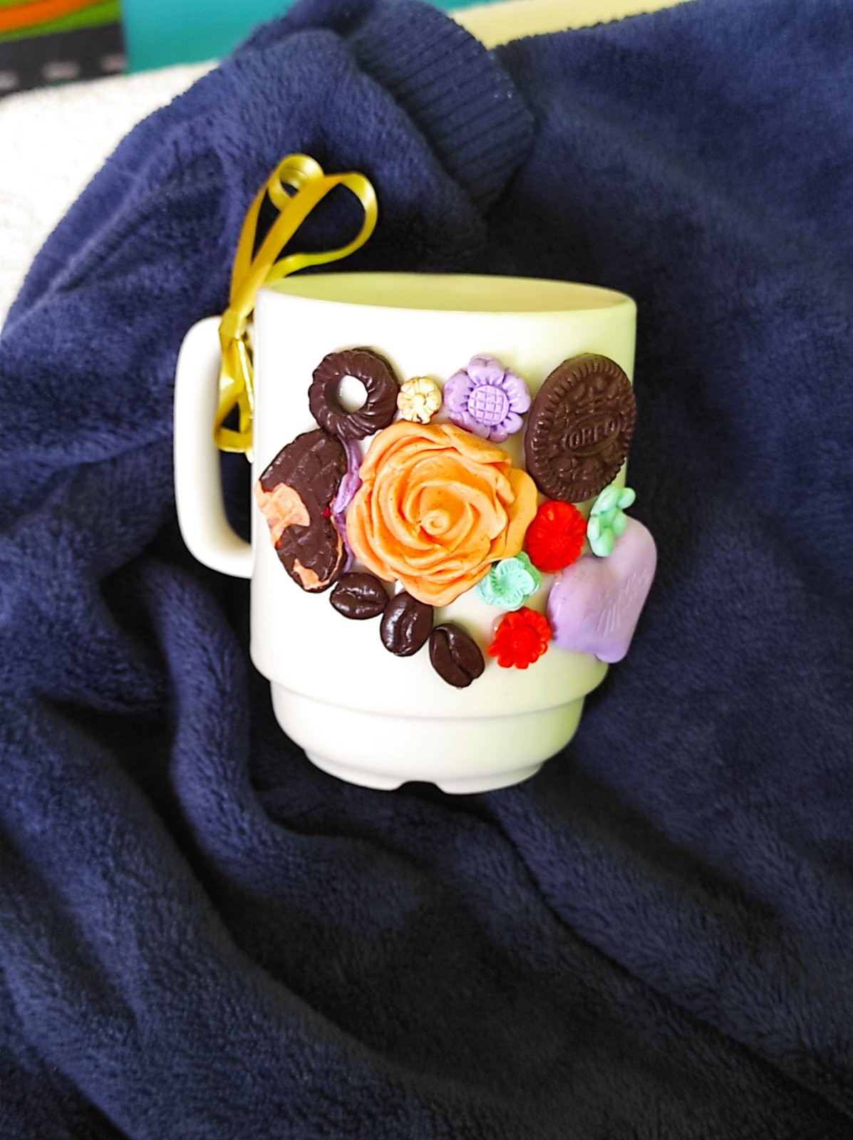 Чаша с декорация от полимерна глина. Вместимост 180 мл.