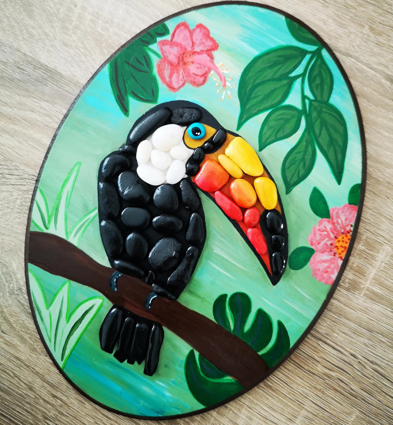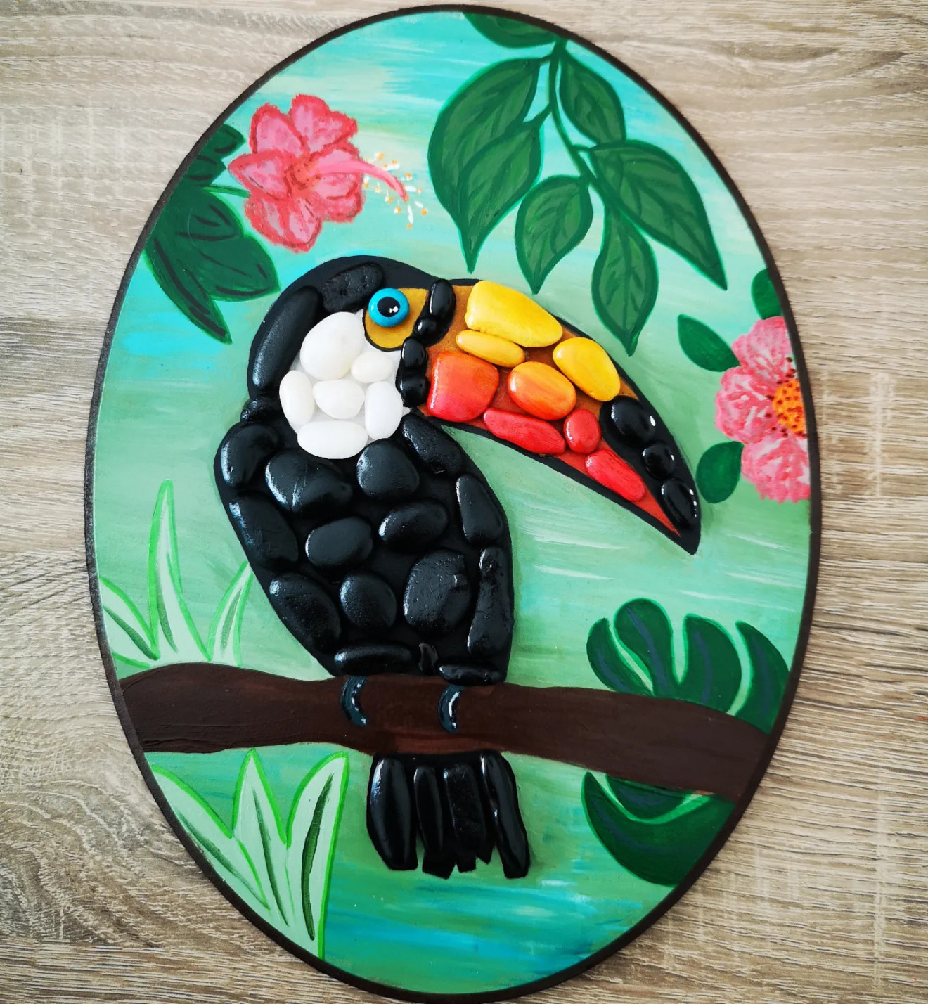 Muzi's Rocks Handmade - Глътка вдъхновение в света на декоративните предмети. Тукан, сред птиците кълвач се смята за най-забележителния. Причината за това е неговият запомнящ се външен вид. Често служи като символ на успех, креативност, шанс, просперитет. Вярва се че носи късмет на притежателя си. Защо пък да нямаме тази прекрасна енергия в дома