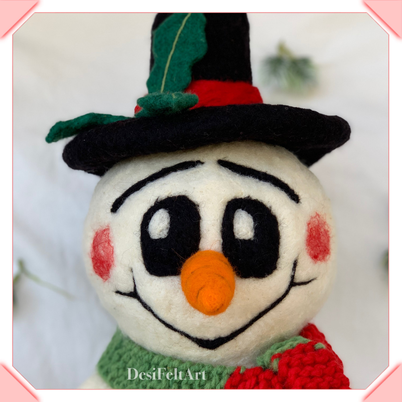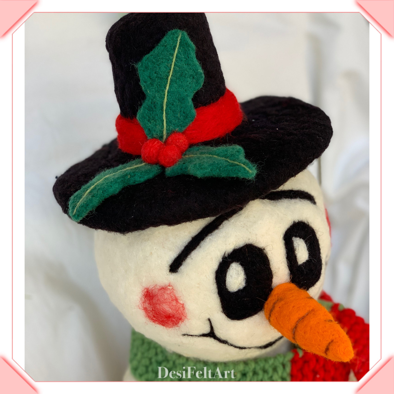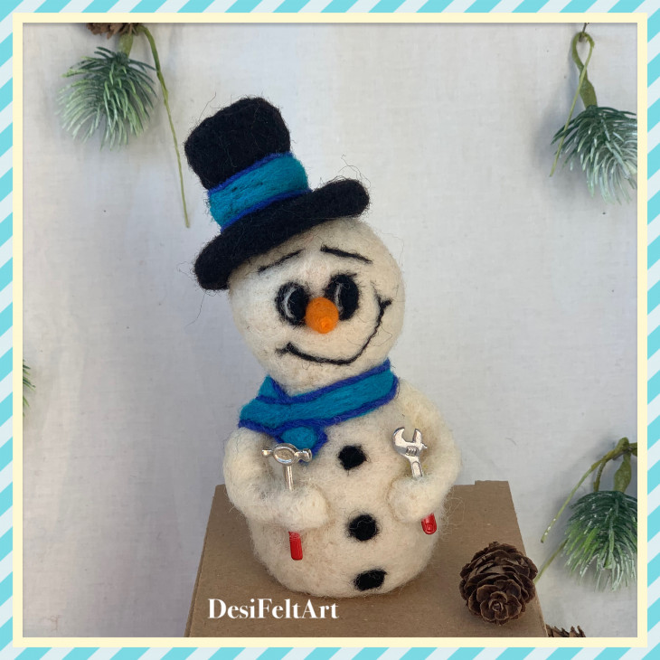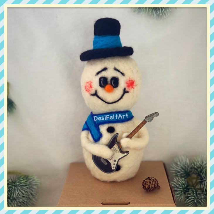 Ръчно изработен снежен човек от вълна, чрез техника иглонабиване (сухо плъстене). Шала е изплетен на две игли и може да се маха Размери: около 45см (височина с шапката) х 23см (ширина). Подходящ подарък за големи и за малки :)