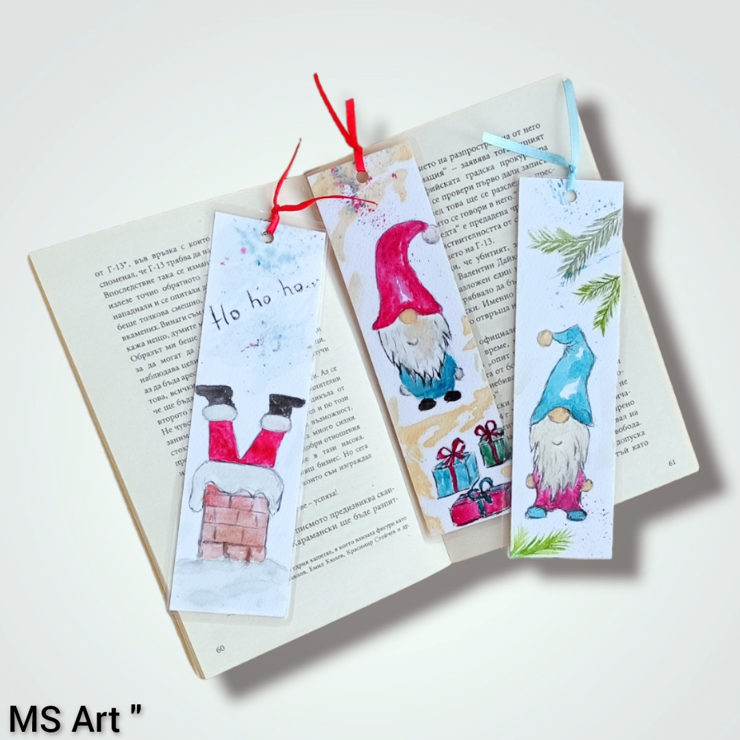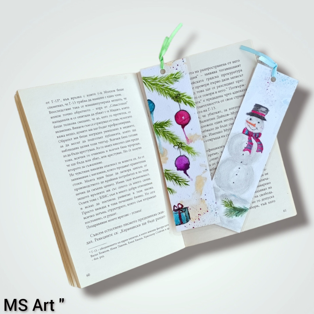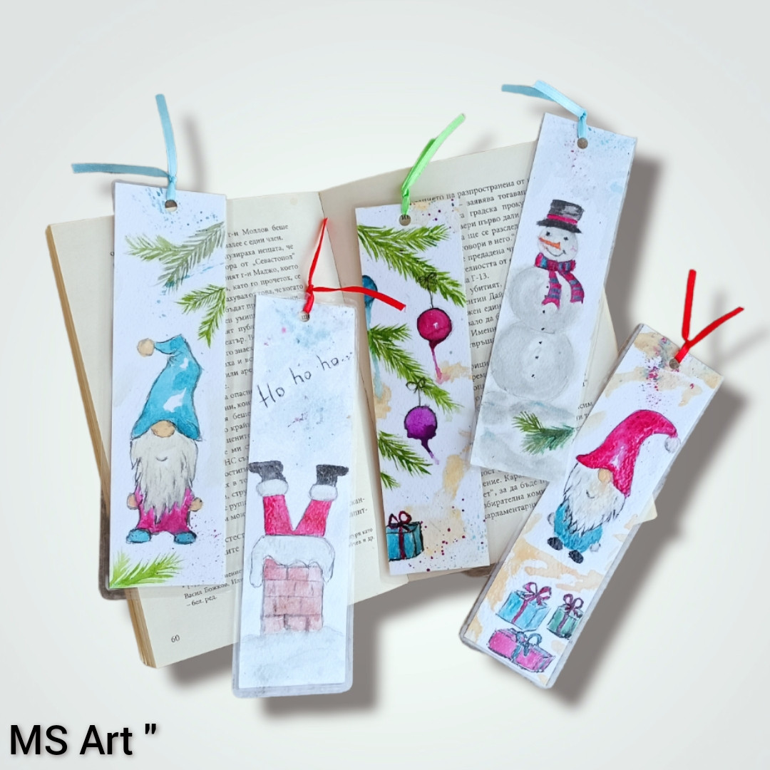 #Коледни #книгоразделители" #Ръчно #рисувани с #акварел върху #акварелен #картон, #ламинирани, размери 19/5 см, цена 3.50 лв за брой.