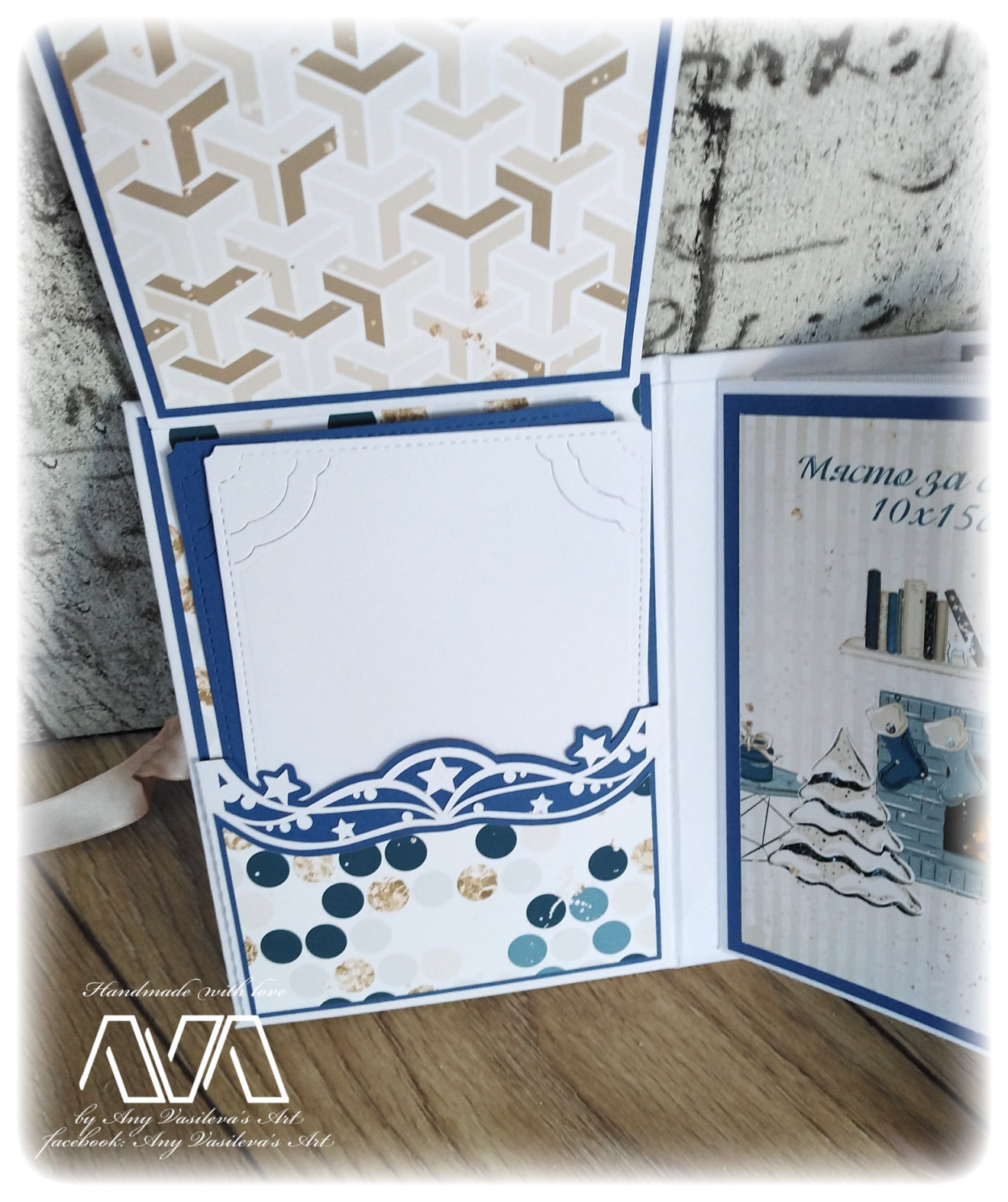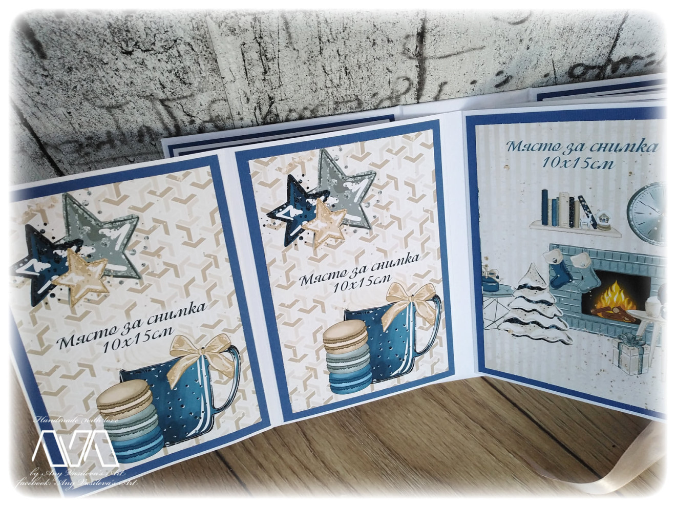 Коледен албум за снимки с размери 13х18х7 см. В нестандартна цветова комбинация за Коледа - тъмно синьо и капучино. Събира 26-30 броя снимки с размери 10х15см. Прекрасно място, където да съберете снимките от коледната си фотосесия. Идеален подарък за коледните празници за всеки - мъж, жена, дете, близък, роднина, колега, приятел.