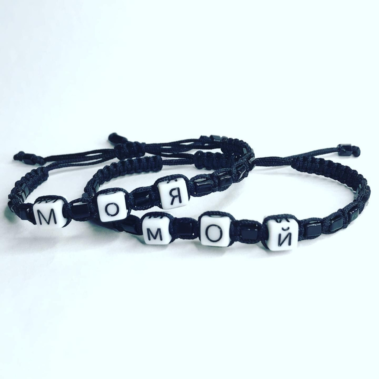 Гривни за двама с букви и квадратни мъниста. Дължината се регулира.