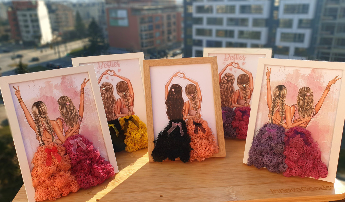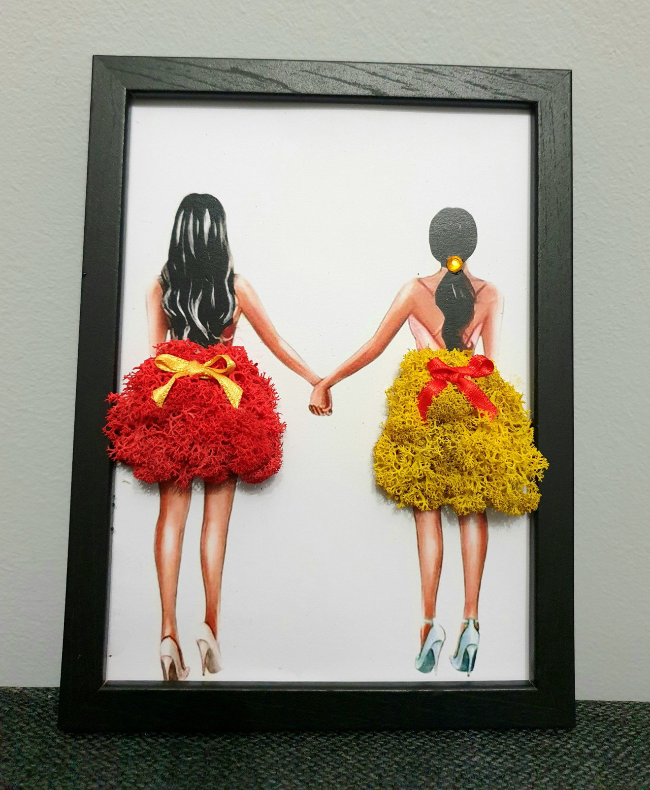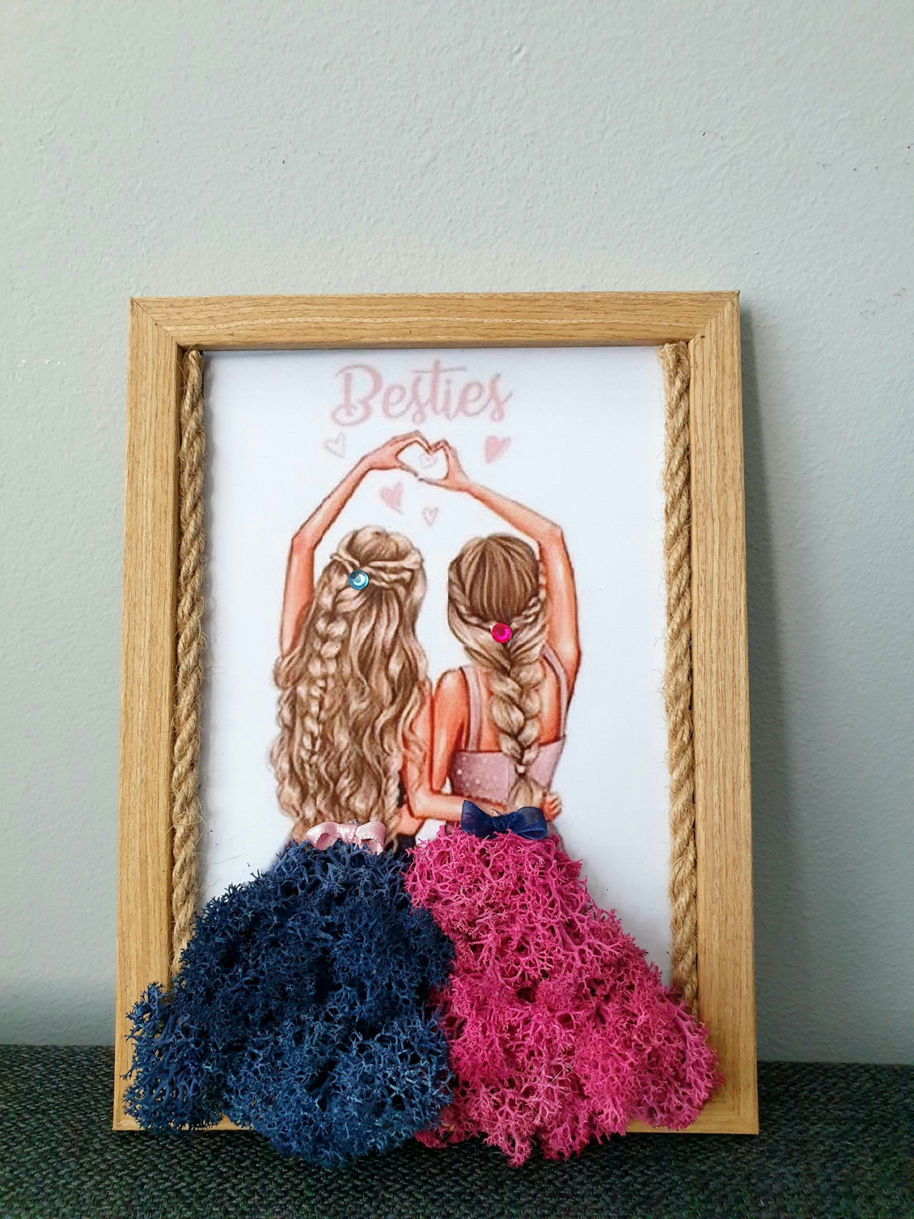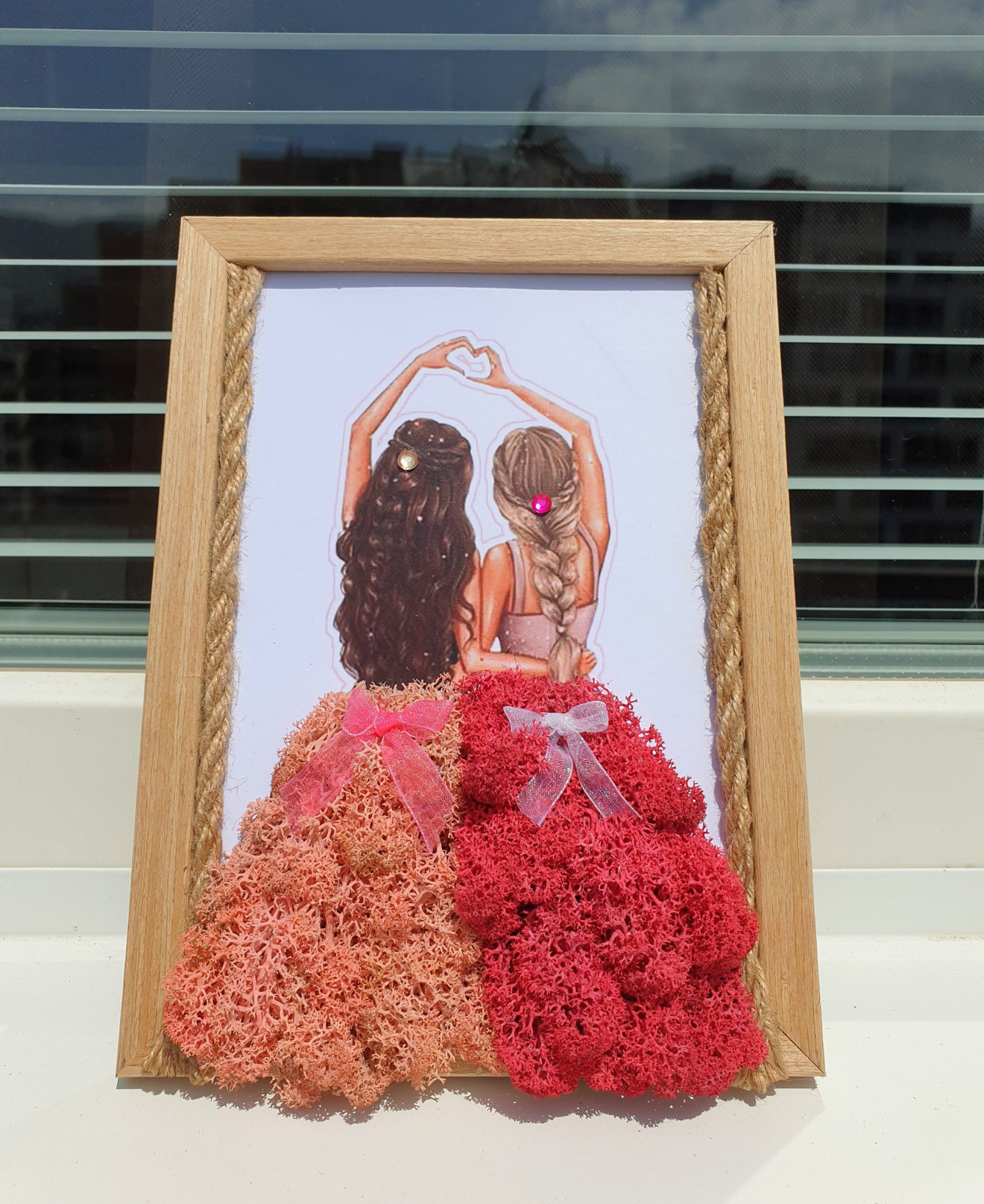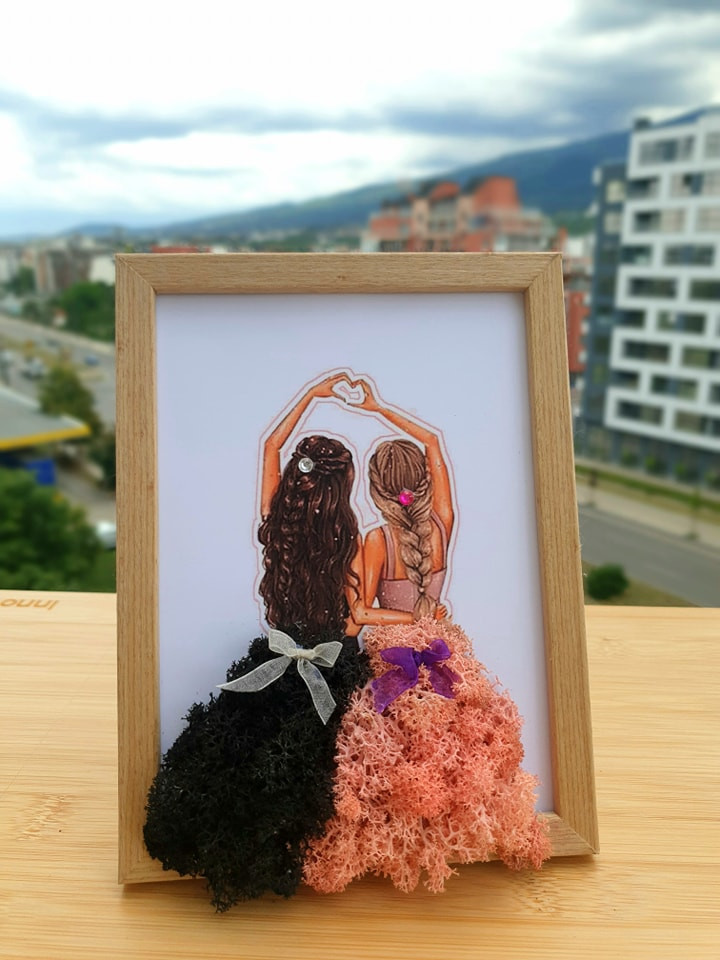 Картина "Приятелките" Размер:15х20см. Може да се прави промяна САМО по цветовете скандинавски мъх по роклите.