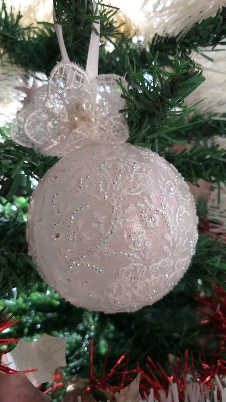 Феерия в бяло ?Елхова топка ръчно рисувана , декорирана с изкуствени камъни, кристалчета и глитер.Фиксирана с лак за запазване на декорацията . Единична бройка,което я прави уникална ! ?Ръчно изработена пандела към която е закачена топката. ? Има и късмет за Новата година . ?Топката е пластмаса с диаметър Ф 8. ?Опаковката е ПВЦ прозрачна кутия. Изпращане по куриер по ваш избор.За връзка с мен 0893375797 Сподели предстоящите празници с любимите си хора и им поднеси съвършените подаръци – точно онова, за което са копнели. Тайната на перфектния подарък е онзи, който приляга на всеки вкус и крие в себе си лично отношение и частичка от коледната магия. Сътворено за вас с любов Елизабета