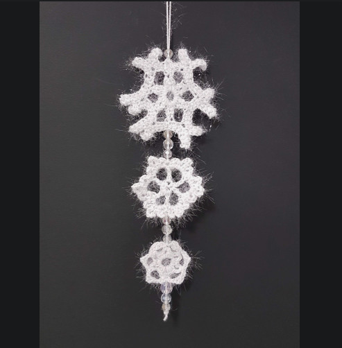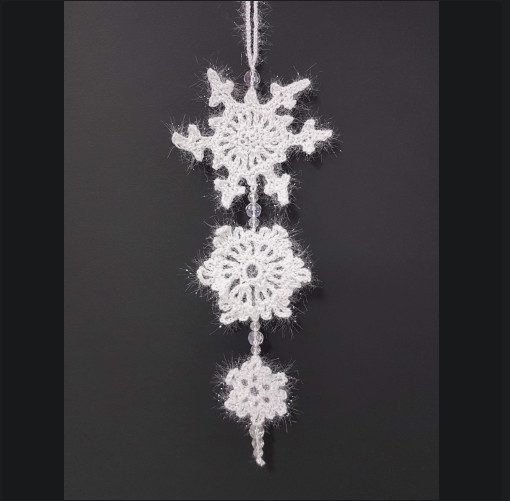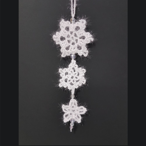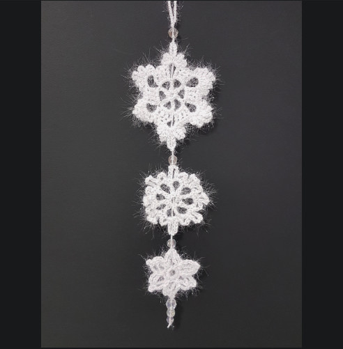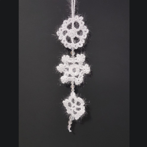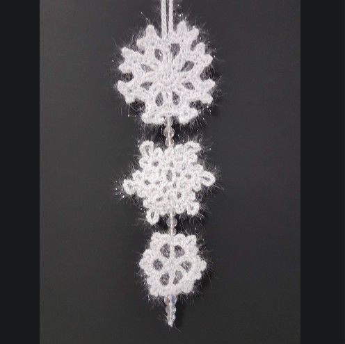 • Снежинките са плетени на една кука, всяка гирлянда е с по три снежинки и кристални топчета. • Размер на снежинките: от4 до 7 см, дължина на гирлянда - 15-16 см. • Срок за изработка 3-4 дни. • Автор: ФлориАртс бутик