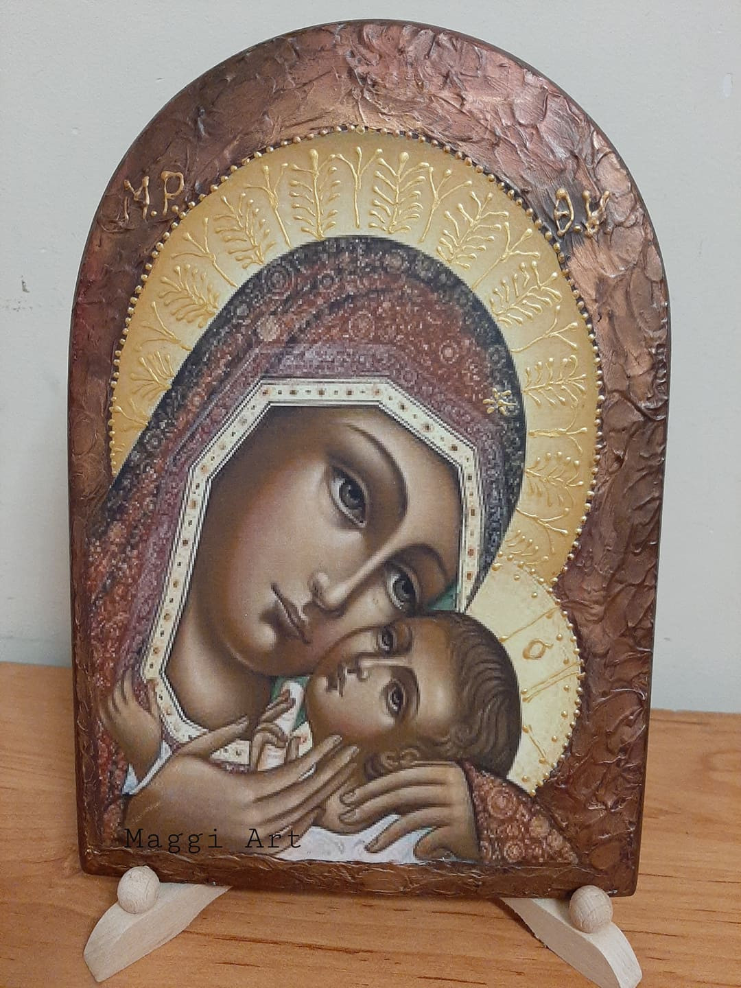 ??? Днес споделям с Вас с една нова #Икона"Умиление". Направена върху масивна дървена основа с размер 16/24см. Трансфер,акрилни бои,байц и структурни пасти. Състарена с битумни и антични пасти и ръчно рисуван ореол с контур. Може да бъде изработена и в по-голям размер. #празник #Икона #хендмейд