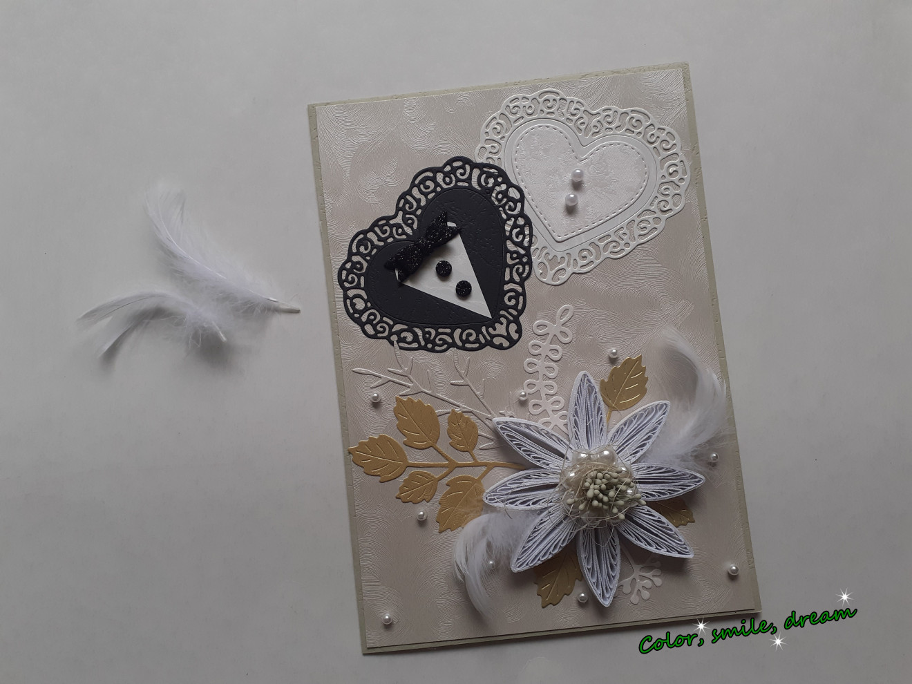 Квилинг сватбена картичка. Идеално допълнение към вашият подарък за младоженци.