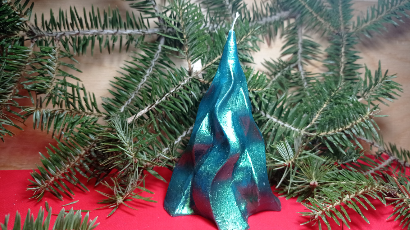 Изработена е от смес разстителни восъци. Оцветена с висококачествена, безвредна боя на водна основа "CADENCE". Авторски дизайн на бутикови свещи БЕЛЛА-РАДОСТ. При желание аромата може да бъде персонализиран. Размери - 12 х 8 см. Тегло - 160 гр.