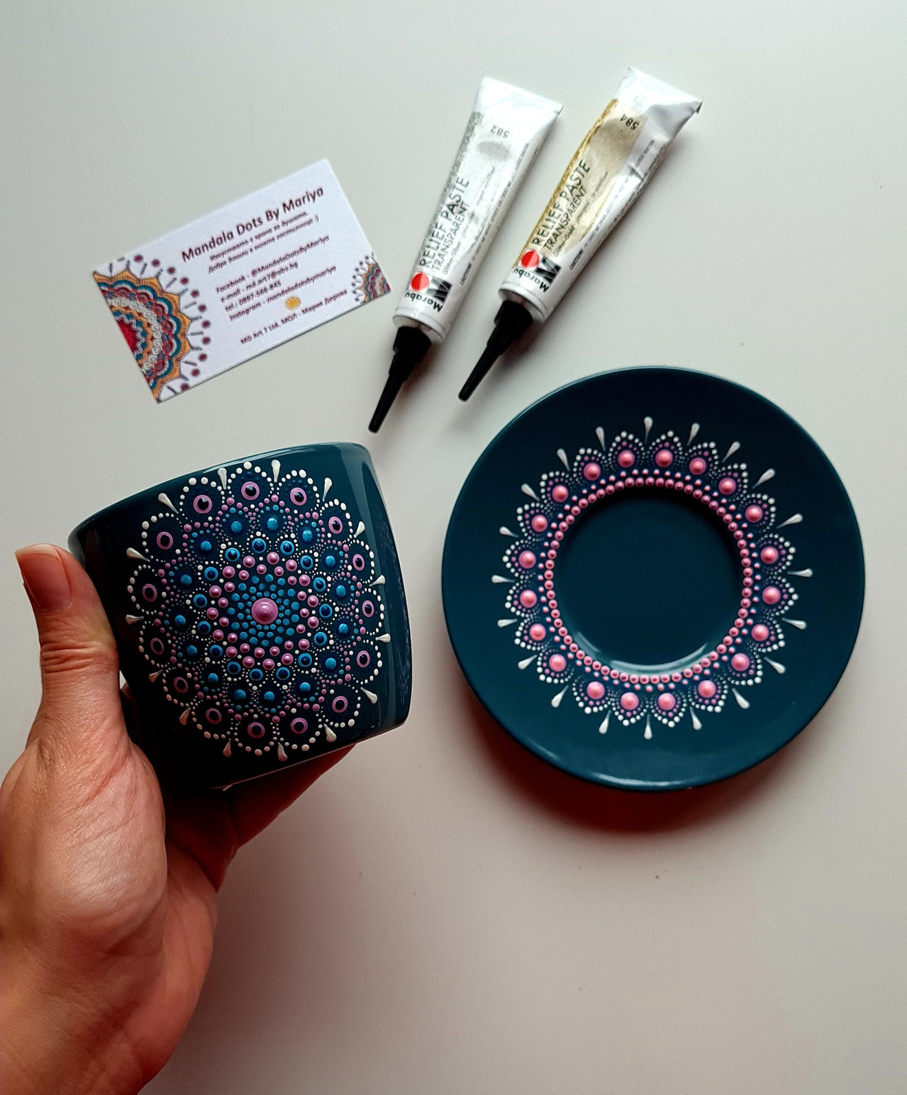 Чашката може да се изработи спрямо символиката на цветовете в мандала, за да научите повече се свържете с мен :))