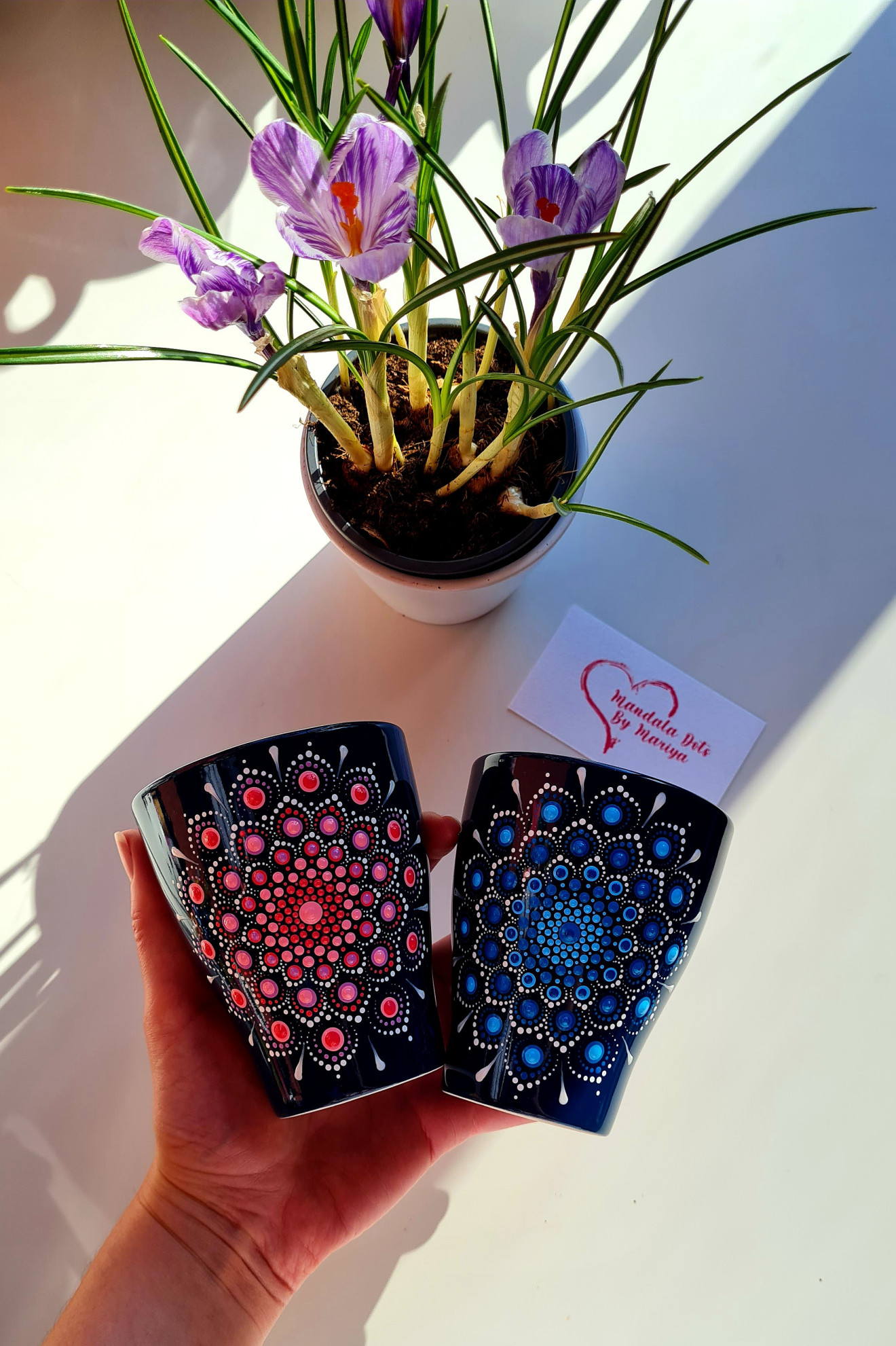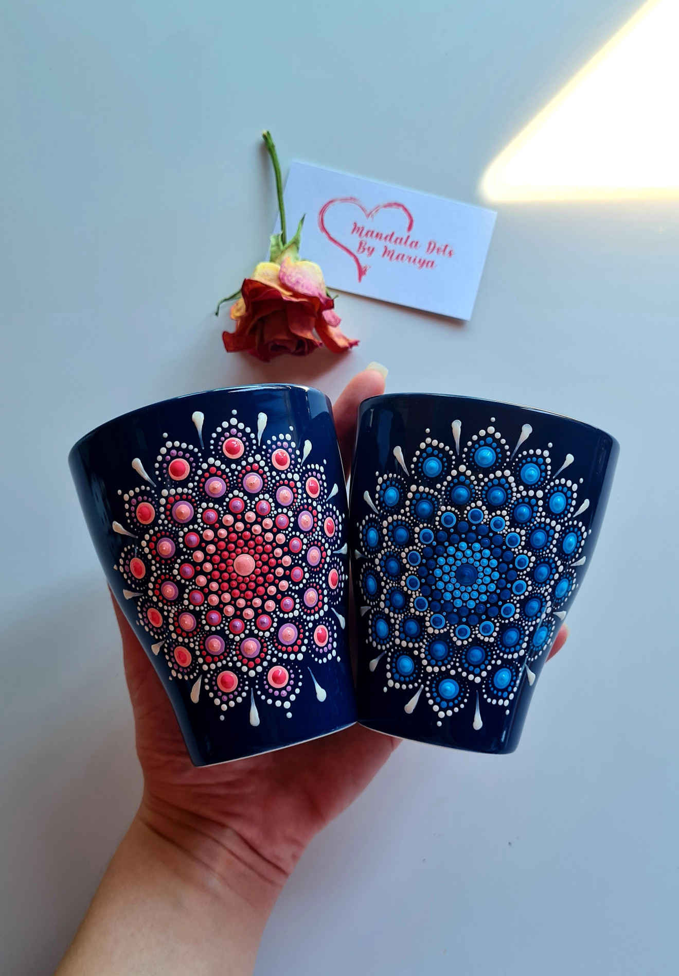 Изцяло ръчно рисувани чаши с чиния 200мл. Техниката е поантилизъм, или иначе казано рисуване с точки :) Цветовете може да са по ваш избор. Боите са НЕ токсични, може да се мие в миялна машина, но имайте предвид, че тя е агресивна. Чашката може да се изработи спрямо символиката на цветовете в мандала, за да научите повече се свържете с мен :)) Чашките са в комплект, но може да се поръчат единични бройки. В подаръчната си кутия ще откриете символиката на цветовете в Мандала. Работя с Еконт!