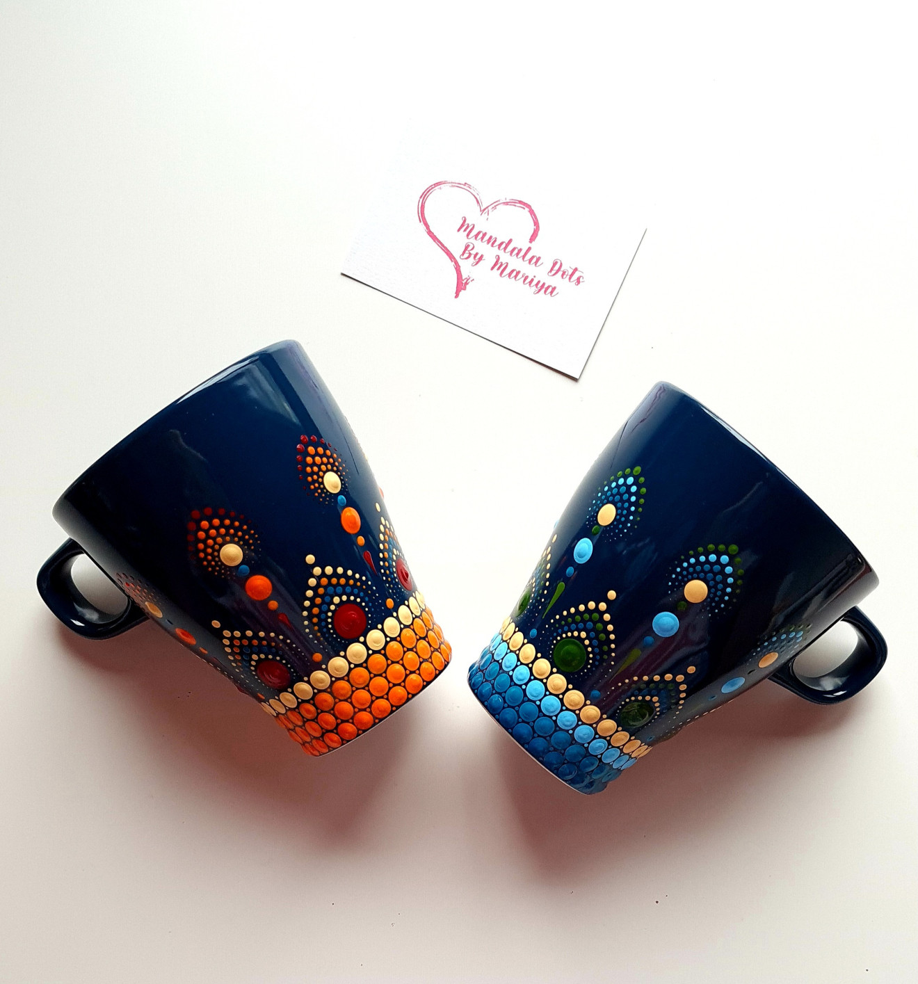 Изцяло ръчно рисувани чаши с чиния 200мл.  Техниката е поантилизъм, или иначе казано рисуване с точки :)