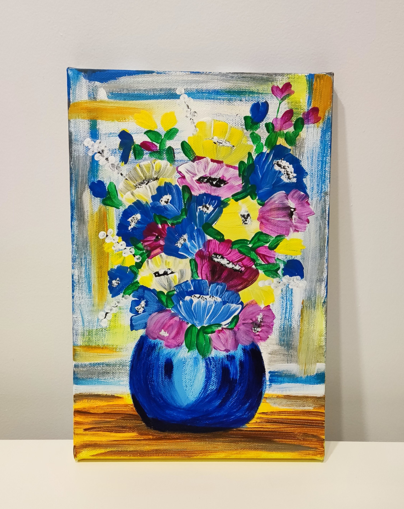 Цветна и свежа, авторска картина "Ваза с цветя 2", акрил върху платно с подрамка 20/30